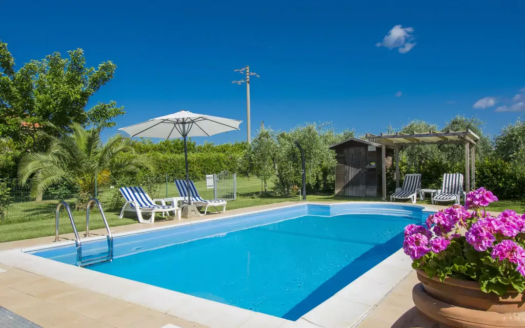 Cottage "Oliveta" is a charming vacation rental located on the outskirts of Cecina, Italy, just two kilometers from the town center. Set in the peaceful countryside, this private property spans 2,000 square meters and is surrounded by a well-kept garden. One of the highlights is the outstanding 8 by 4 meter swimming pool, with a depth of 150 centimeters, fenced for safety and seasonally available from March 5th to November 5th. The pool maintenance is taken care of by the owner/gardener. Other amenities include an outdoor shower, Internet WiFi, parking for up to three cars, and a yard.