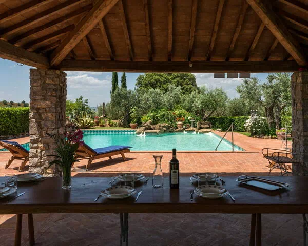 The outdoor areas of Rustic house "Bardi II" have been thoughtfully designed to make the most of the stunning natural surroundings. The private garden of 1,500 m2 encompasses a lush lawn and a wildlife garden, offering ample space to unwind, explore, and connect with the Tuscan landscape. The swimming pool, measuring 10 x 9 meters with a depth of 80 to 160 cm, is a non-heated pool available from May 15th to October 15th, providing a refreshing retreat during the warmer months. An outdoor shower is conveniently located nearby, allowing you to rinse off after a swim without stepping indoors. A dedicated pool house equipped with a cooking stove adds a wonderful dimension to outdoor living, making it easy to prepare and enjoy meals in the open air while soaking in the sunshine and the natural beauty of the surrounding countryside.