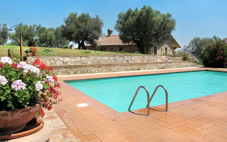 Nestled atop a hill at 400 metres above sea level in the heart of the Umbrian countryside, the rustic and comfortable country house "La Collina Fiorita" offers an authentic Italian retreat surrounded by trees and open fields in Piegaro, Italy. This charming holiday rental is set within a private estate of 5 hectares, inviting guests to immerse themselves in the tranquillity of nature while enjoying a generous selection of on-site amenities. The property features a beautifully maintained fenced garden of 2 hectares, providing ample space for relaxation and outdoor enjoyment. A refreshing swimming pool measuring 10 x 5 metres is available for guests during its seasonal opening period, from 16 May to 26 September, offering a perfect retreat during the warm summer months. Reliable WiFi connectivity is available throughout the house, ensuring guests remain connected throughout their stay. Parking is conveniently available directly on the premises, accessible via a 100-metre unmade road, making arrival straightforward for those travelling by car.