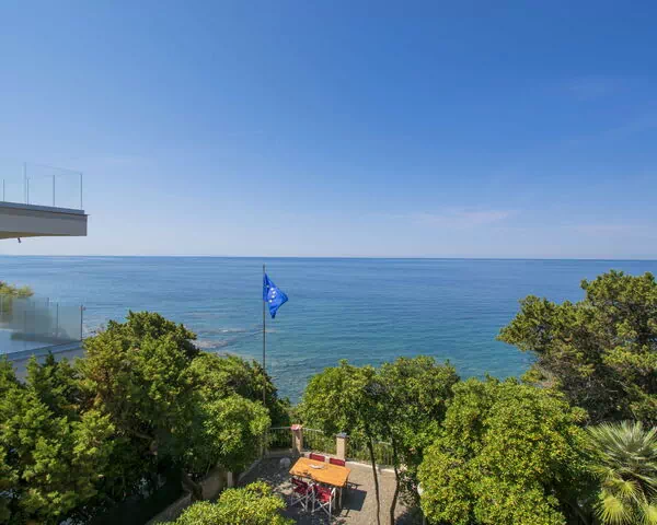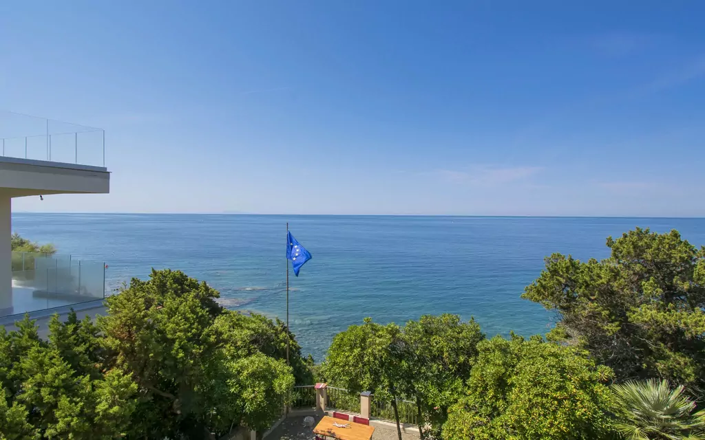 The outdoor spaces at Villa "Tamerici" are among its most captivating features, offering a harmonious blend of natural landscape and carefully arranged leisure areas. The terraced garden cascades across the sloped terrain, filled with mature trees and abundant wildlife that lend the property a distinctly authentic and tranquil character. A dedicated terrace provides the ideal setting for outdoor dining and socialising, furnished with garden furniture and a barbecue that invite you to enjoy long, leisurely meals in the open air with family and friends. Whether you choose to relax in the shade of the surrounding trees, dine al fresco as the sun sets over the Tuscan hills, or simply take in the peaceful atmosphere of the fenced grounds, the exterior of Villa "Tamerici" offers a truly immersive outdoor experience. The proximity of both sandy and rocky beaches just 15 metres from the property means that the pleasures of the sea are always within effortless reach, seamlessly extending your outdoor living space to the shoreline itself.