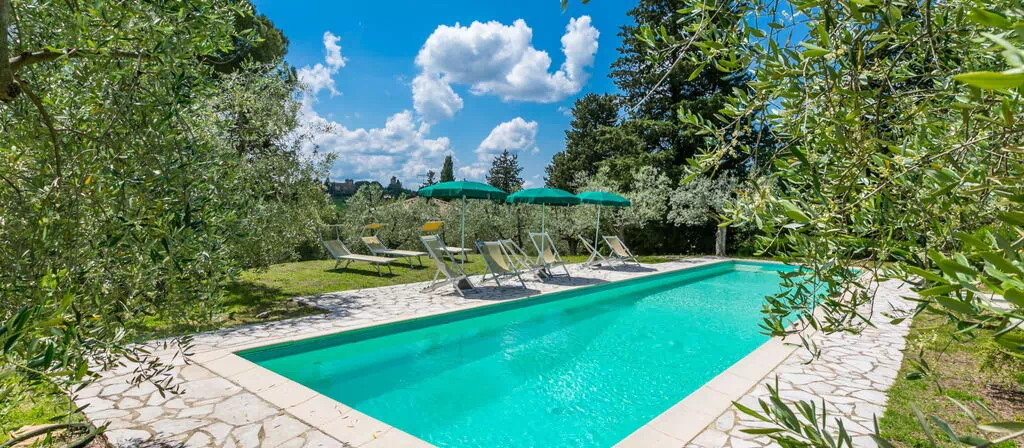 Nestled in the rolling hills of Tuscany, Italy, the Fienile di Policleto is a charming single-family holiday rental that offers an authentic and secluded retreat in the heart of one of the most celebrated regions in the world. Located in Bagno A Ripoli, this beautifully positioned property consists of a main house and a separate outbuilding, set within a generous 10,000 square meter plot of land that ensures complete privacy and tranquility. The estate features a terraced garden filled with mature trees and a courtyard, creating a lush and peaceful environment ideal for families or groups of friends seeking a memorable Tuscan escape. Guests benefit from reliable internet wifi throughout their stay, allowing them to remain connected while enjoying the serenity of the countryside. A private swimming pool measuring 17 x 4 meters is one of the most distinctive features of the property, offering a refreshing retreat during the warmer months. Ample parking is available directly on the premises, providing convenience for those arriving by car and planning to explore the surrounding region. The expansive yard surrounding the property further enhances the sense of space and seclusion that defines this exceptional Tuscan residence.