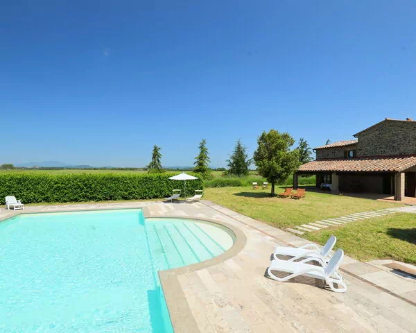 Gemma is a rustic and comfortable country house situated 600 meters above sea level, surrounded by trees and fields, offering a serene and peaceful atmosphere. It is a detached property, providing privacy and seclusion in the countryside. The vacation rental boasts a beautiful 8-hectare garden, perfect for relaxation, as well as a swimming pool (14 x 7 meters, depth 170 cm) with an internal staircase, available seasonally from June 1 to September 30. Additionally, it features a yard, internet WiFi, and parking facilities.