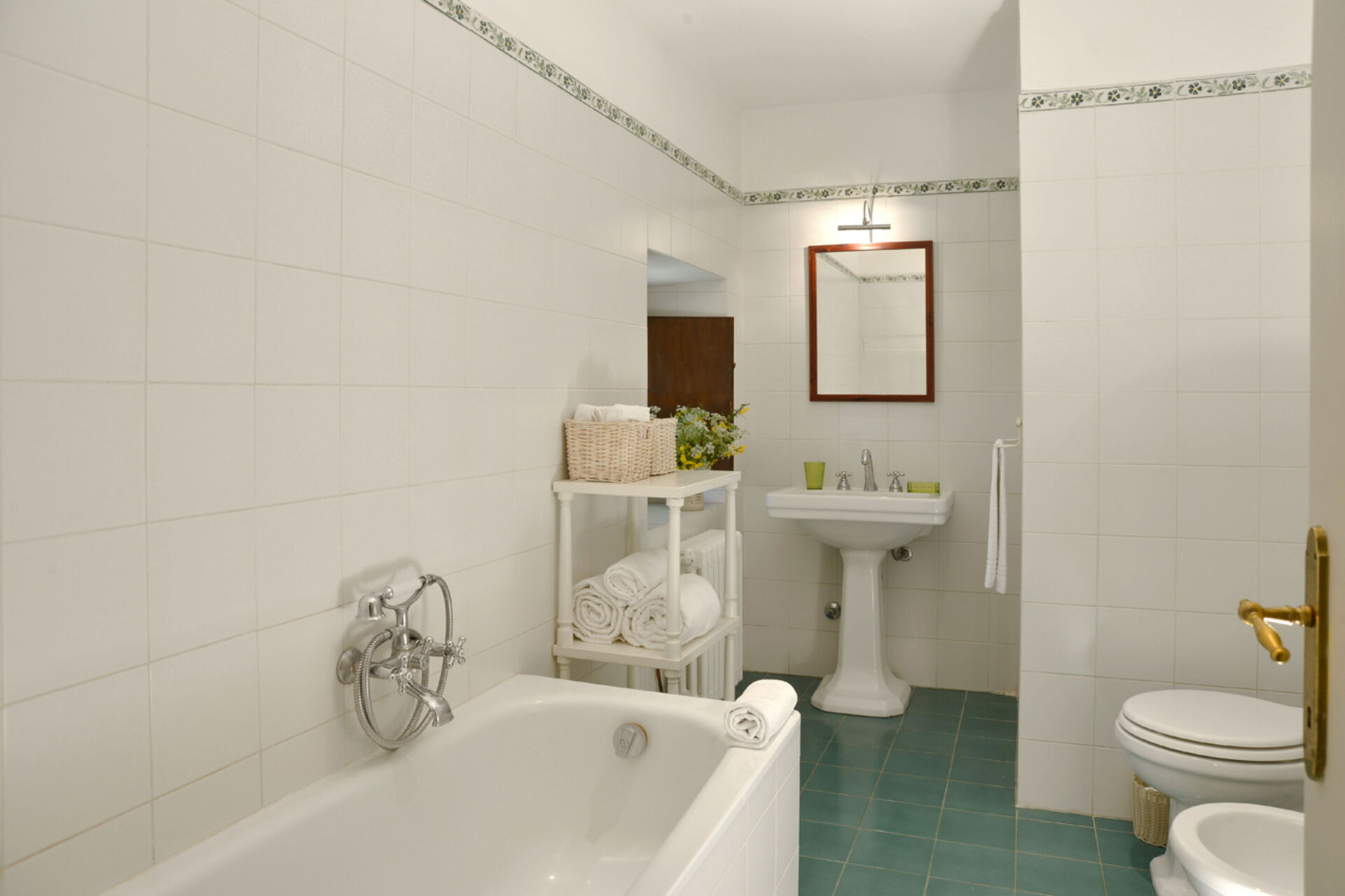 Bedroom + Ensuite Bathroom: double bed, WIFI internet, basin, toilet, bidet, bathtub, hairdryer, exit to the balcony.