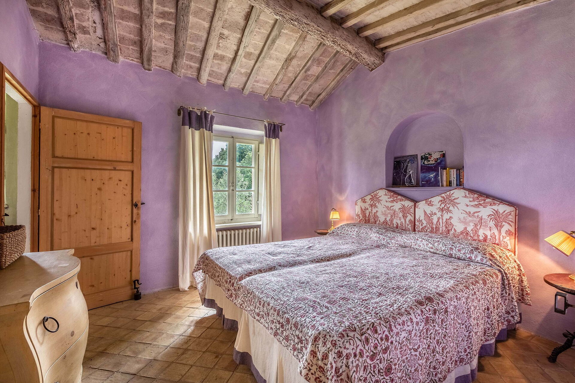 The views from the house are outstanding taking in the Val d’Orcia and Crete Senesi, considered by many as the most beautiful areas of Tuscany. The owner a renowned Italian Architect and Interior Designer restored the villa in total respect to the Tuscan tradition and furnished it with an impressive combination of furniture personally designed and some antiques ones. The property comprises the main Tuscan stone-built farmhouse and a bedroom with en-suite bathroom in the guesthouse. Other bedrooms with en-suite bathroom can be rented at extra cost sleeping up to 18 people. Lavacchio has been restored and furnished to high standard all the first floor bedrooms have air-conditioning and two other portable units are available on request.