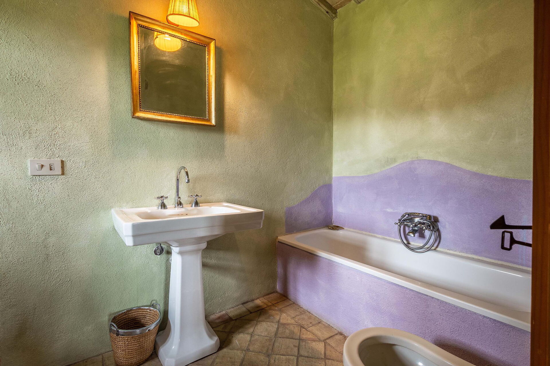 Bedroom + Ensuite Bathroom 2: double bed, WIFI internet, basin, toilet, bidet, bathtub.