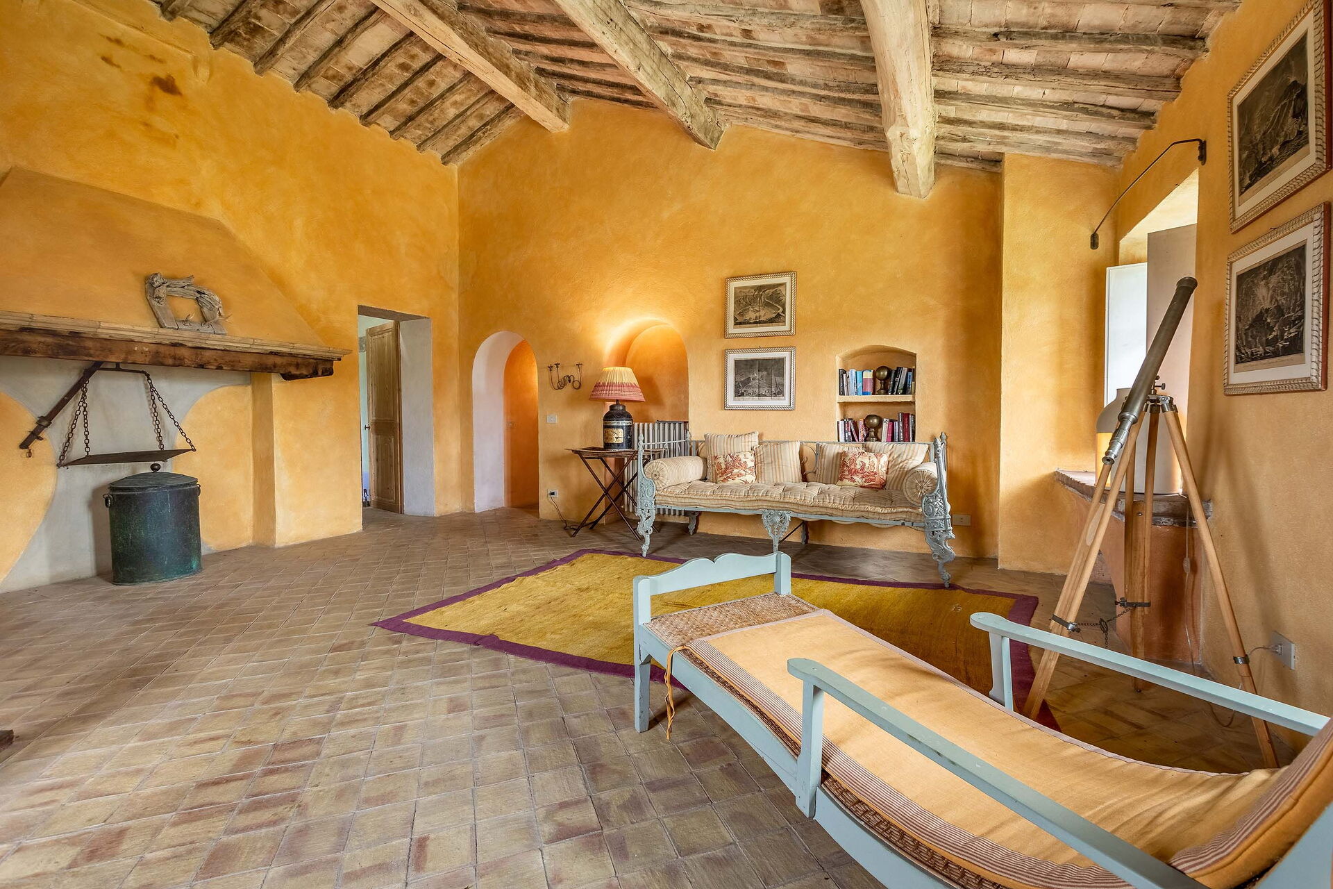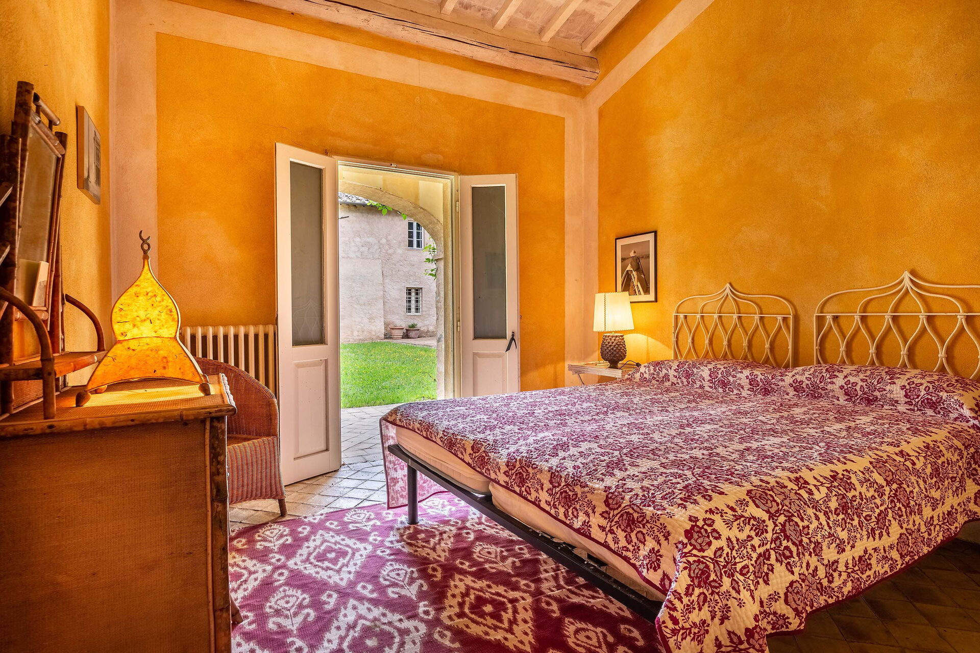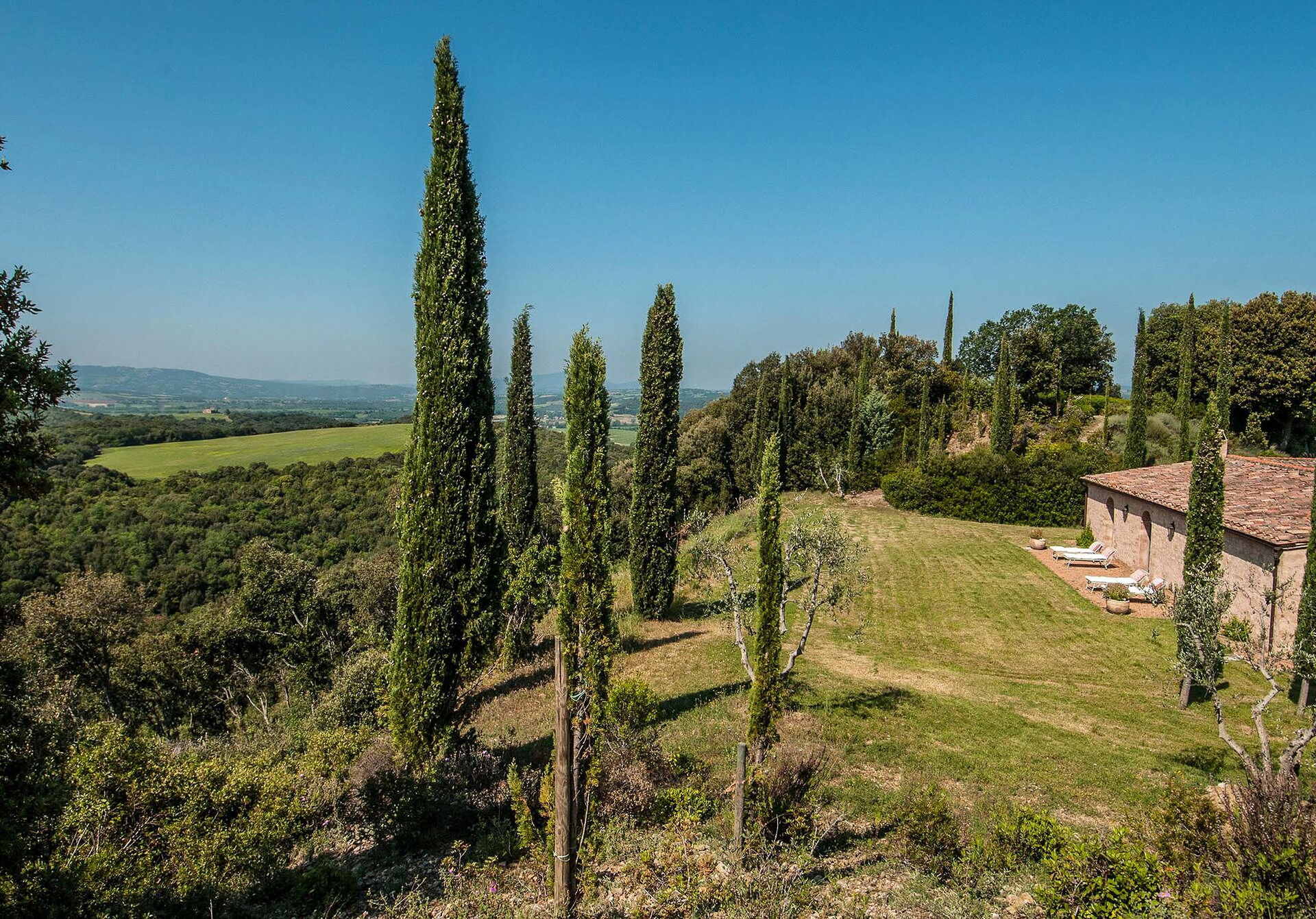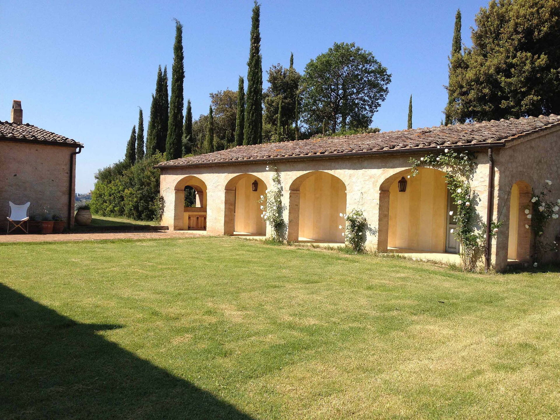 The views from the house are outstanding taking in the Val d’Orcia and Crete Senesi, considered by many as the most beautiful areas of Tuscany. The owner a renowned Italian Architect and Interior Designer restored the villa in total respect to the Tuscan tradition and furnished it with an impressive combination of furniture personally designed and some antiques ones. The property comprises the main Tuscan stone-built farmhouse and a bedroom with en-suite bathroom in the guesthouse. Other bedrooms with en-suite bathroom can be rented at extra cost sleeping up to 18 people. Lavacchio has been restored and furnished to high standard all the first floor bedrooms have air-conditioning and two other portable units are available on request.