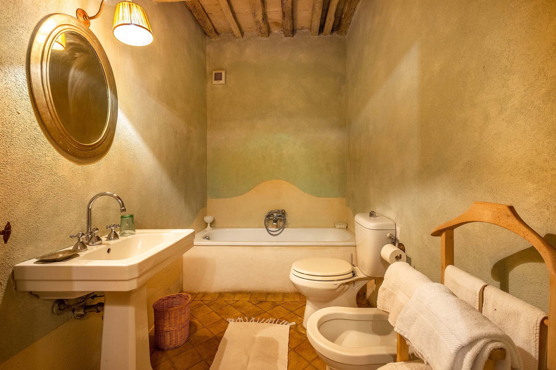 Bedroom + Ensuite Bathroom: double bed, WIFI internet, basin, toilet, bidet, bathtub, hairdryer.
