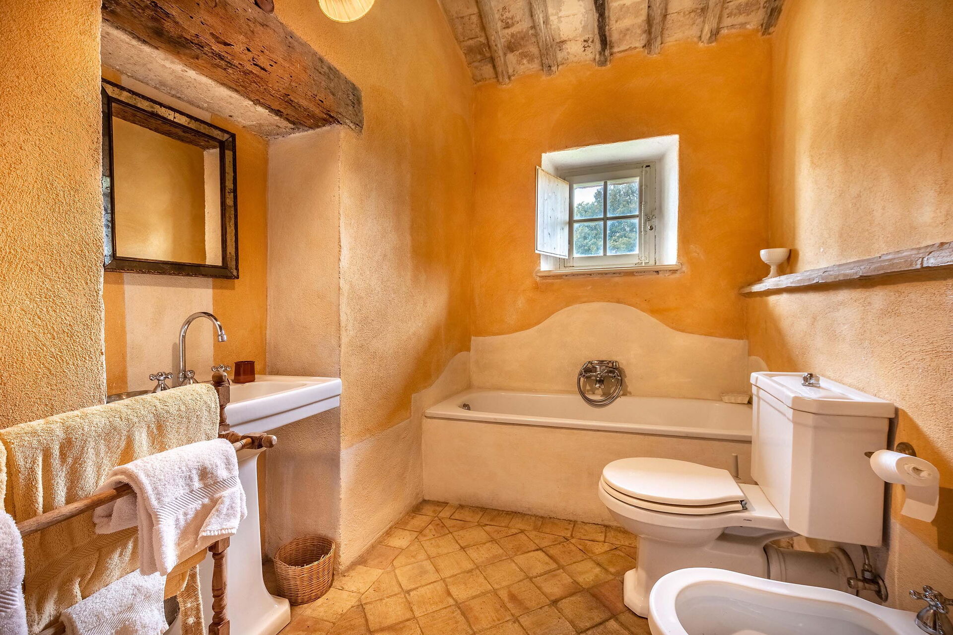 Bedroom + Ensuite Bathroom 3: double bed, WIFI internet, basin, toilet, bidet, bathtub.