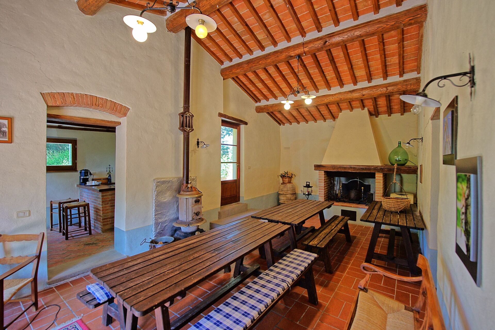 First floor: living room (satellite TV) with double sofa bed, fireplace and dining area with kitchen area (fridge, microwave), double bedroom (air conditioning), bedroom with two single beds (air conditioning), bathroom with shower.