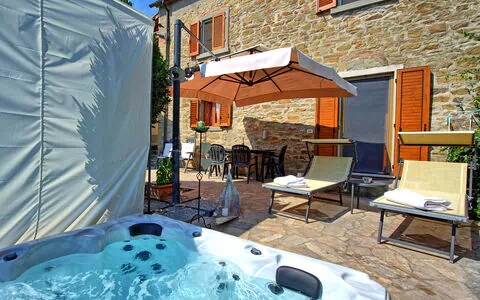 At guests’ disposal: Private garden furnished with tables and chairs to dine al fresco, Private terrace, Outdoor jacuzzi (heatable up to 40°C) for the exclusive use of guests, Private parking (1 parking space), Washing machine in a laundry room located outside the house.