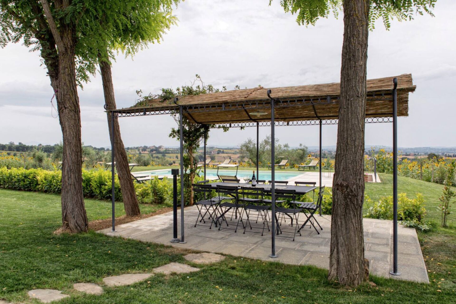 Garden (700 m2): swimming pool (private, length: 10m, width: 5m, depth: 1.5m, outdoor), WIFI internet, barbecue, al fresco dining, dining table (people: 12), three gazebos, garden furniture, ten sunbeds.