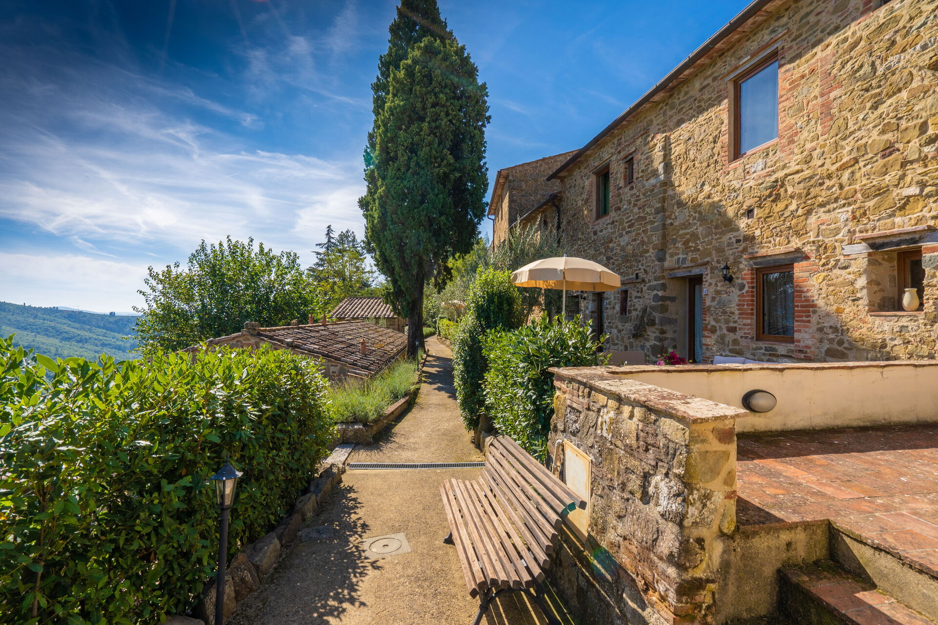 Upon arrival at Borgo San Vincenti you’ll find a beautiful clean well-maintained property with views of the hills perfect for a relaxing vacation in Tuscany. For your pleasure you will find a private pool where you can relax while enjoying a nice cold beverage after a hectic day of shopping. Sharing a meal with friends and family is a huge part of the Tuscan culture. Take advantage of the well-equipped kitchen to prepare meals using local produce while on your vacation. The kitchen includes coffee machine, microwave, toaster and refrigerator, as well as, plenty of tableware and cutlery for up to 22 people. Dine 'al fresco' like a real Tuscan, the fully furnished is the ideal setting to enjoy food, family and the lovely Tuscan weather.