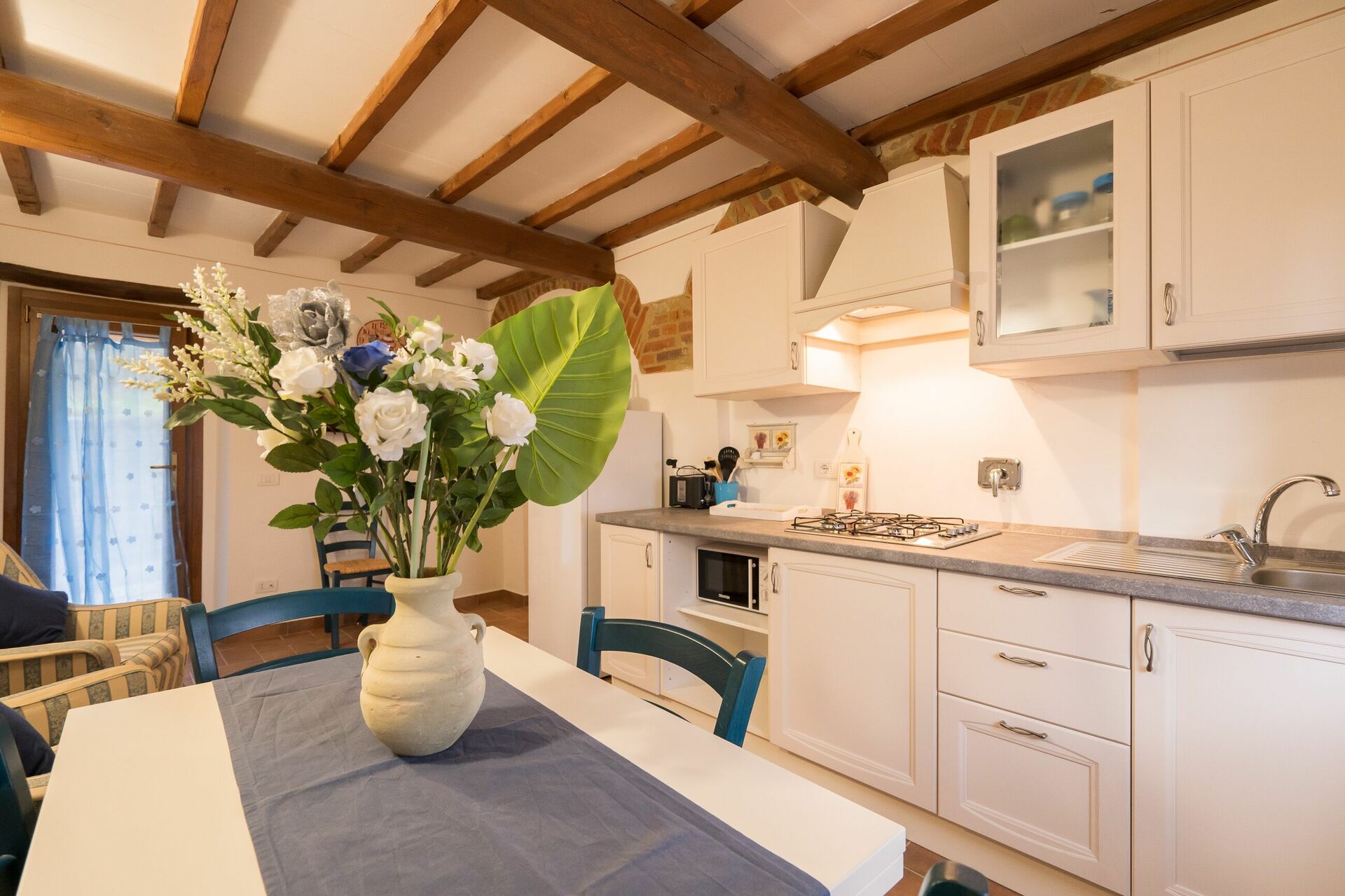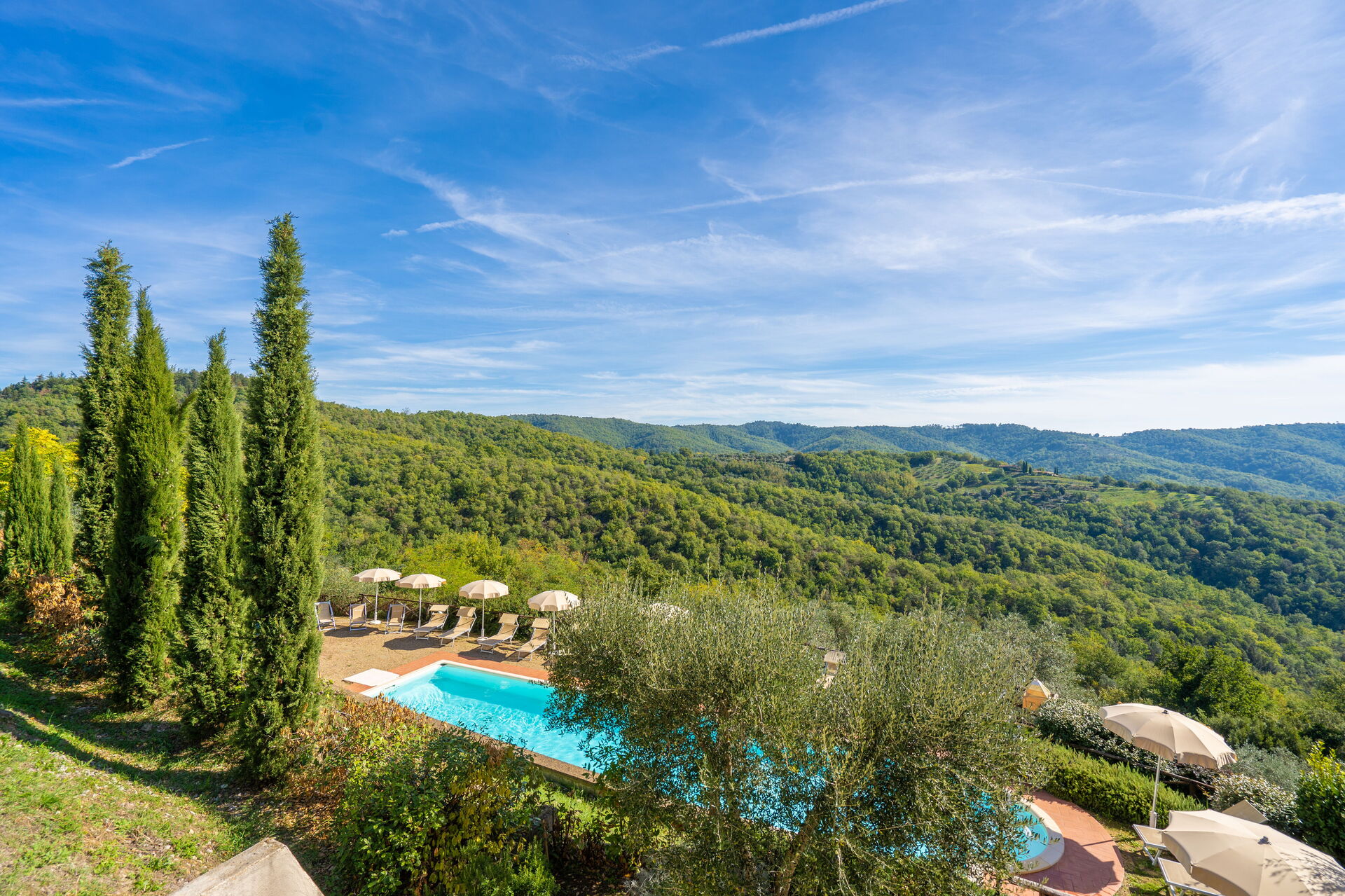 Upon arrival you’ll find a nice clean well-maintained property with views of the hills perfect for a splendid holiday in Tuscany. For your enjoyment you will find a private pool where you can unwind while enjoying a nice cold beverage after a hectic day of shopping. Dining with friends and family is a big part of the Tuscan culture. Take advantage of the well-equipped kitchen to prepare meals using local produce while on your holiday. The kitchen includes coffee machine, microwave, toaster and refrigerator, as well as, plenty of tableware and cutlery for up to 22 people. Dine 'al fresco' like a real Tuscan, the fully furnished is the ideal setting to enjoy food, family and the nice Tuscan weather.