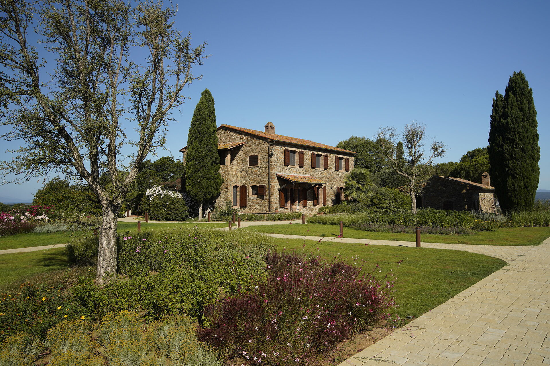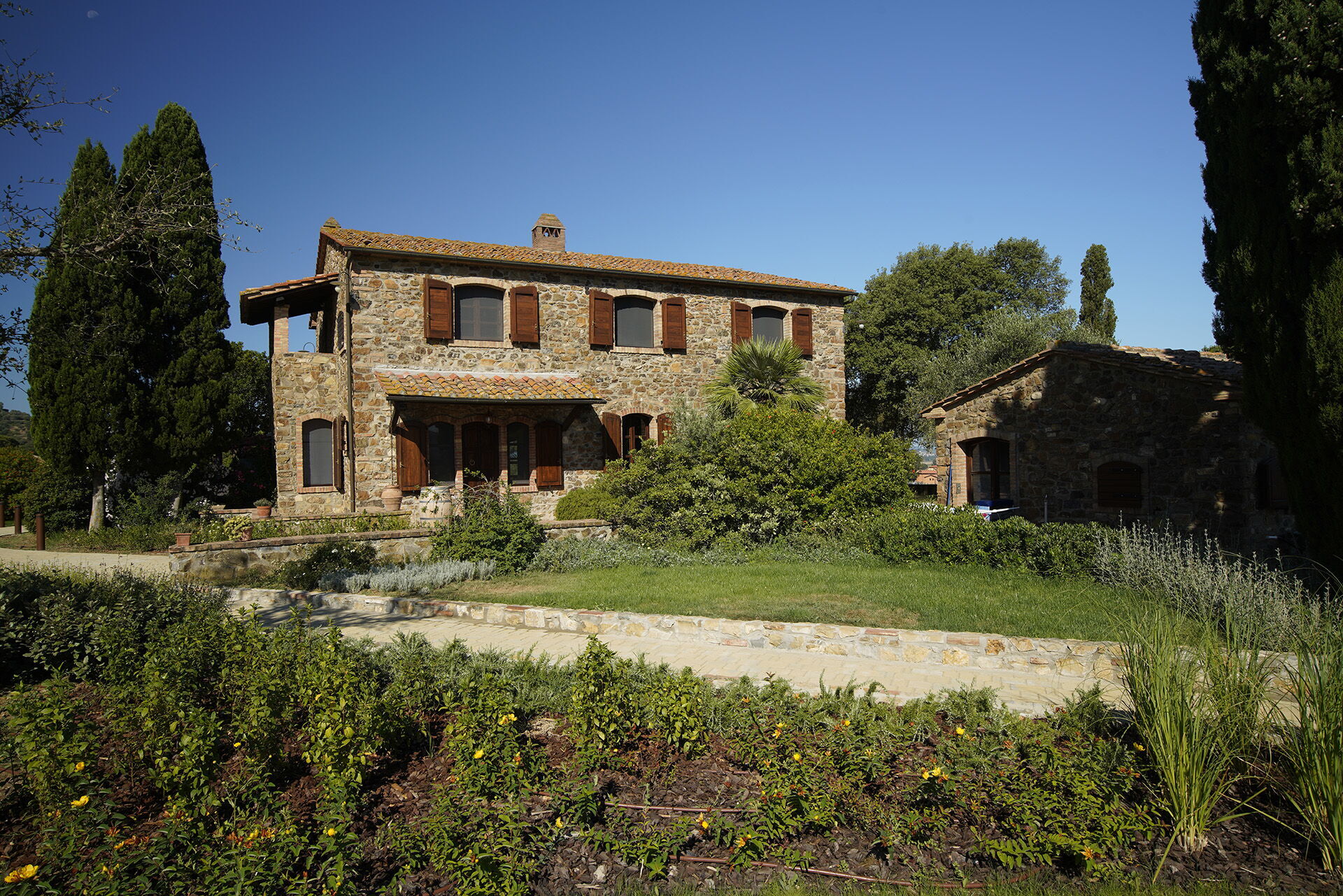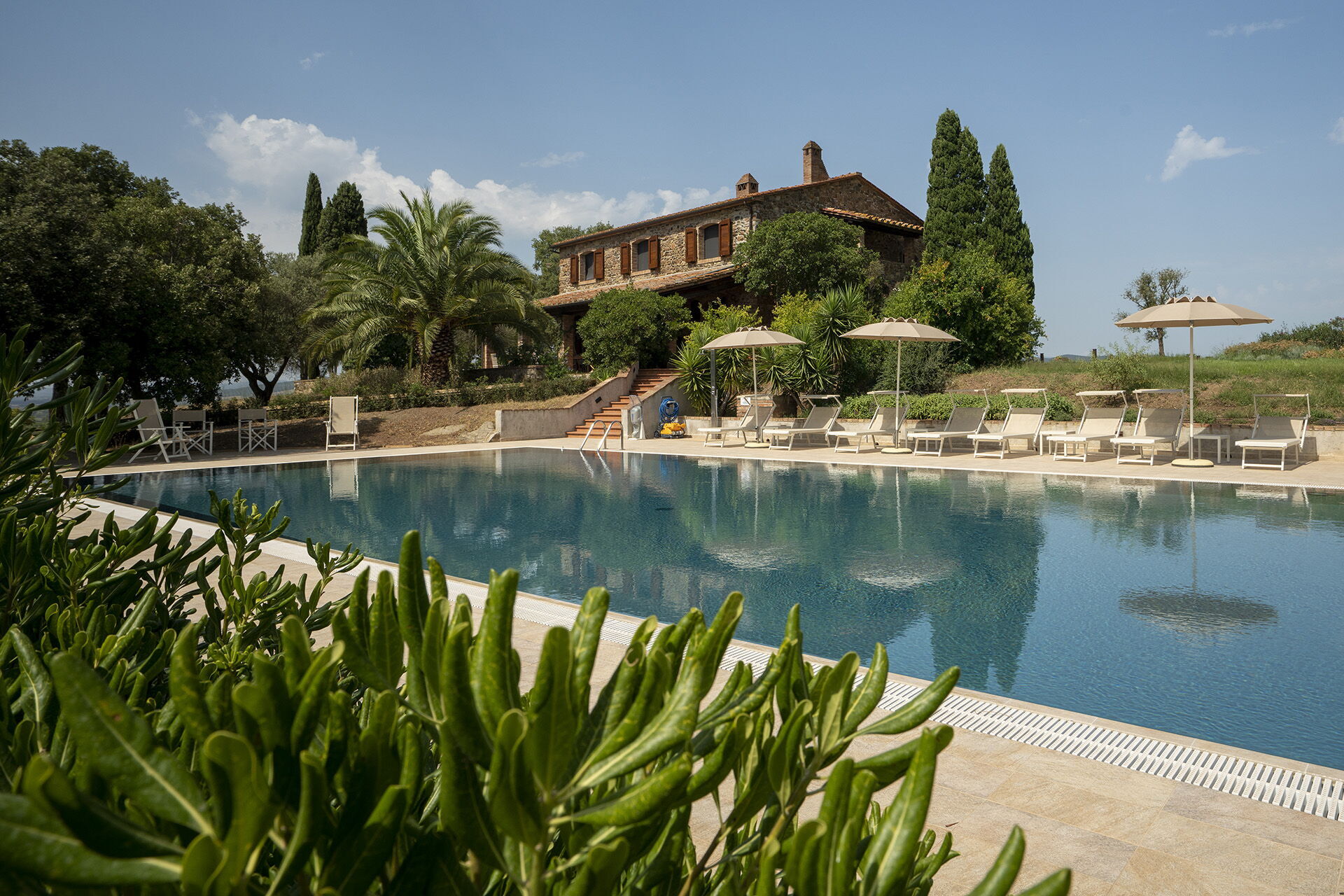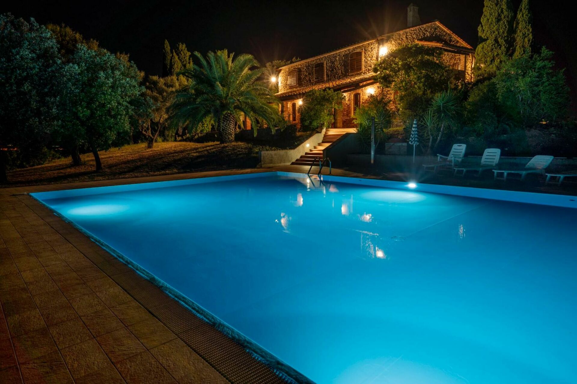 Vacation rental Campo Valerio is a lovely stone building (300 sq m) that includes air conditioning, WiFi internet and private pool. The property can sleep up to 13 people comfortably in seven bedrooms with seven bathrooms. Campo Valerio is located 4 km (3 mi) from Scarlino, Italy and only 91 km (56 mi) from Montalcino in the tourist area "Grosseto - Maremma". If you'd like to visit the beautiful Tuscan coast, it's just a short distance to the sea (7 km 4 mi).
