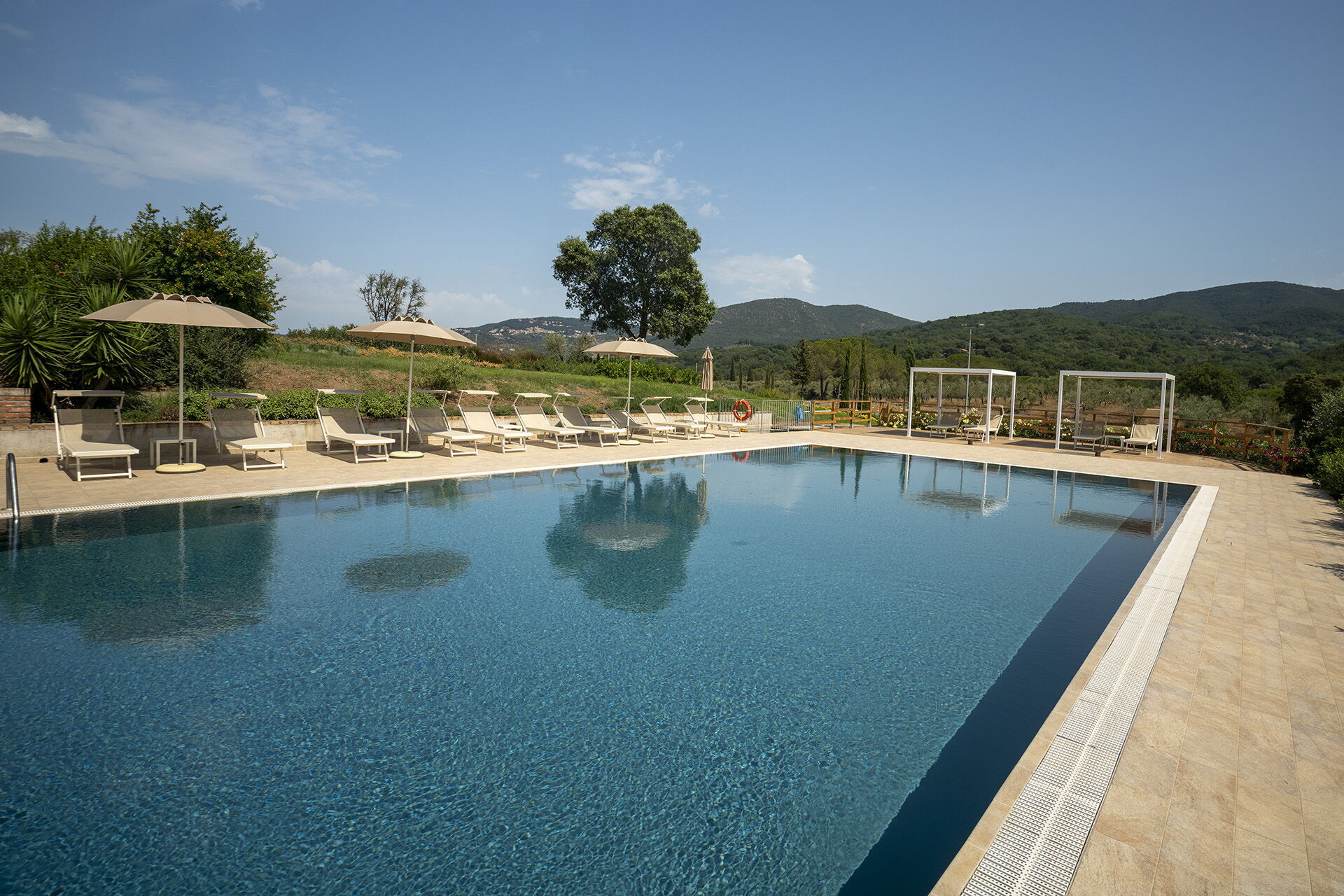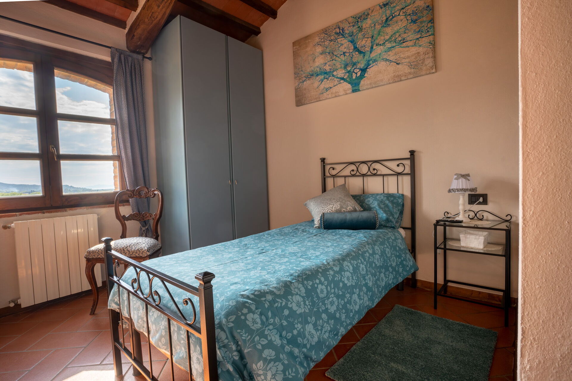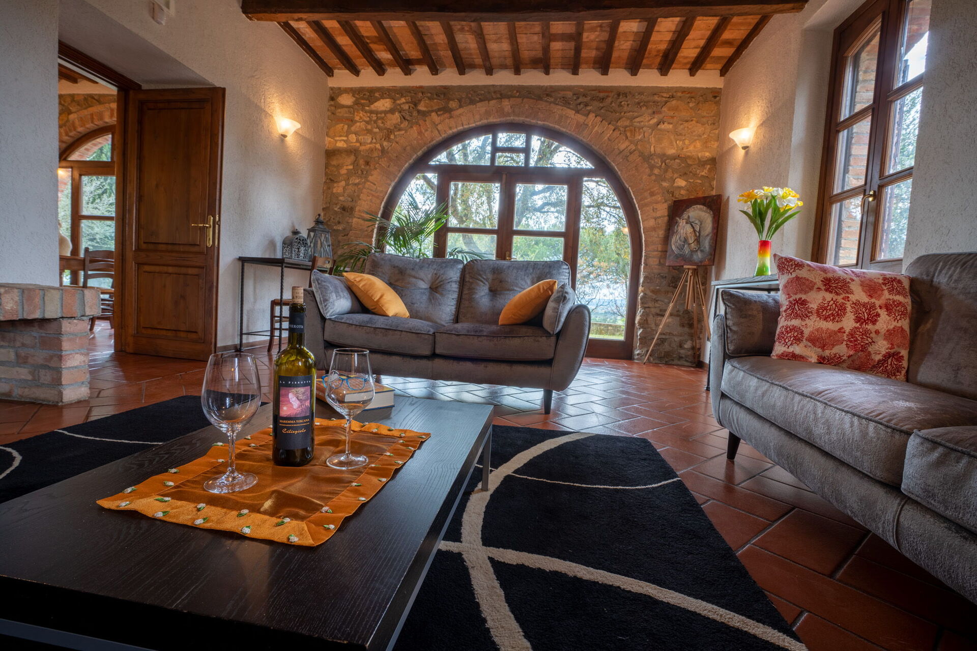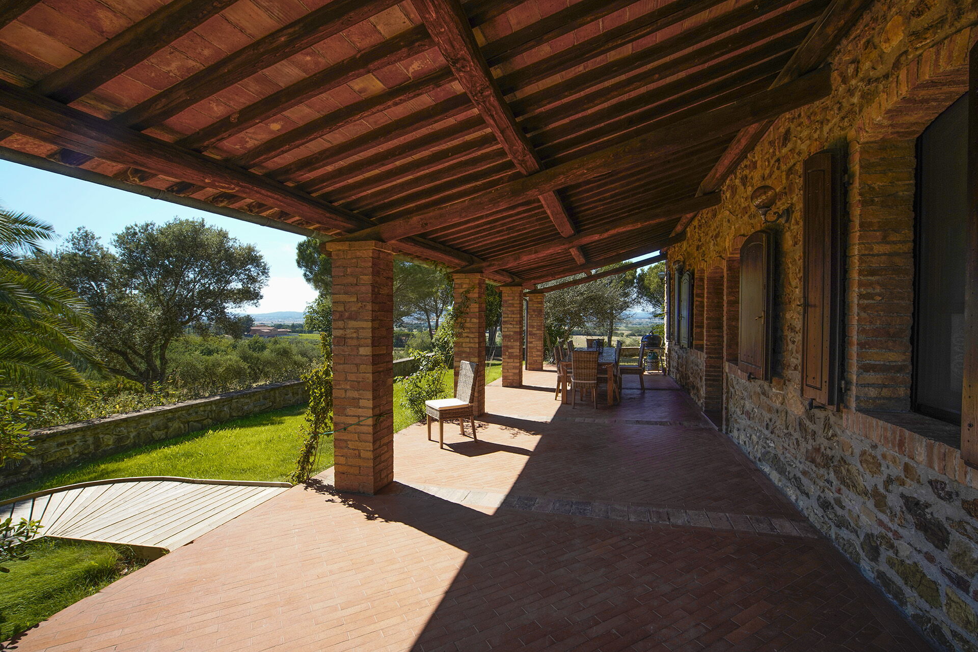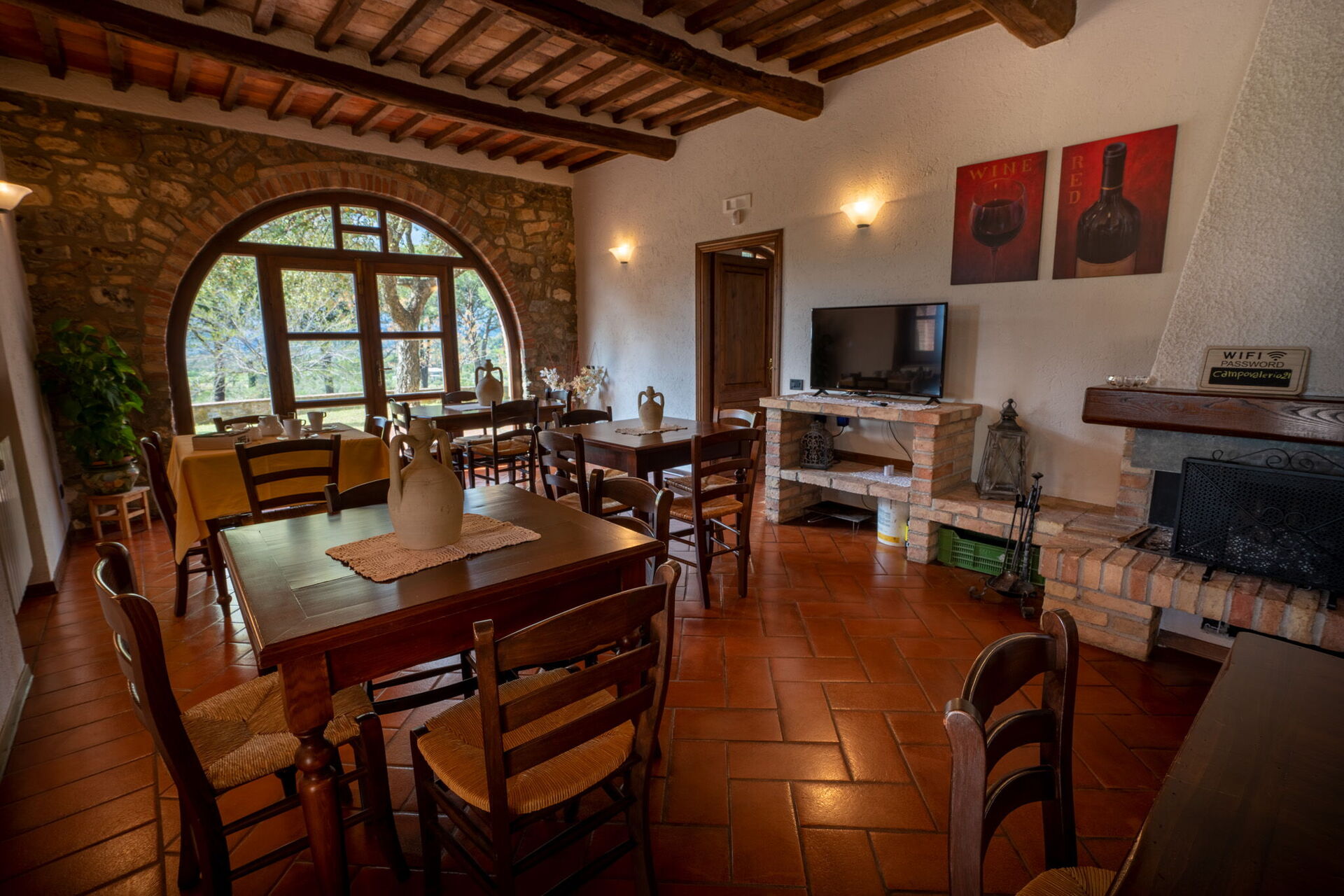 When you arrive at Campo Valerio you’ll find a beautiful clean well-maintained property with views of the hills and the sea ideal for a relaxing holiday in Tuscany. Regardless of how you spend your days - visiting museums, shopping, sightseeing or just driving in the countryside, when you arrive home you can unwind with your family and friends at the pool for a perfect ending to another day in Tuscany. For your pleasure, on the grounds there is a barbecue grill and playground. If you enjoy cooking for family and friends there is a well-equipped kitchen including coffee machine, microwave, toaster and refrigerator, as well as, plenty of tableware and cutlery for up to 13 people.
