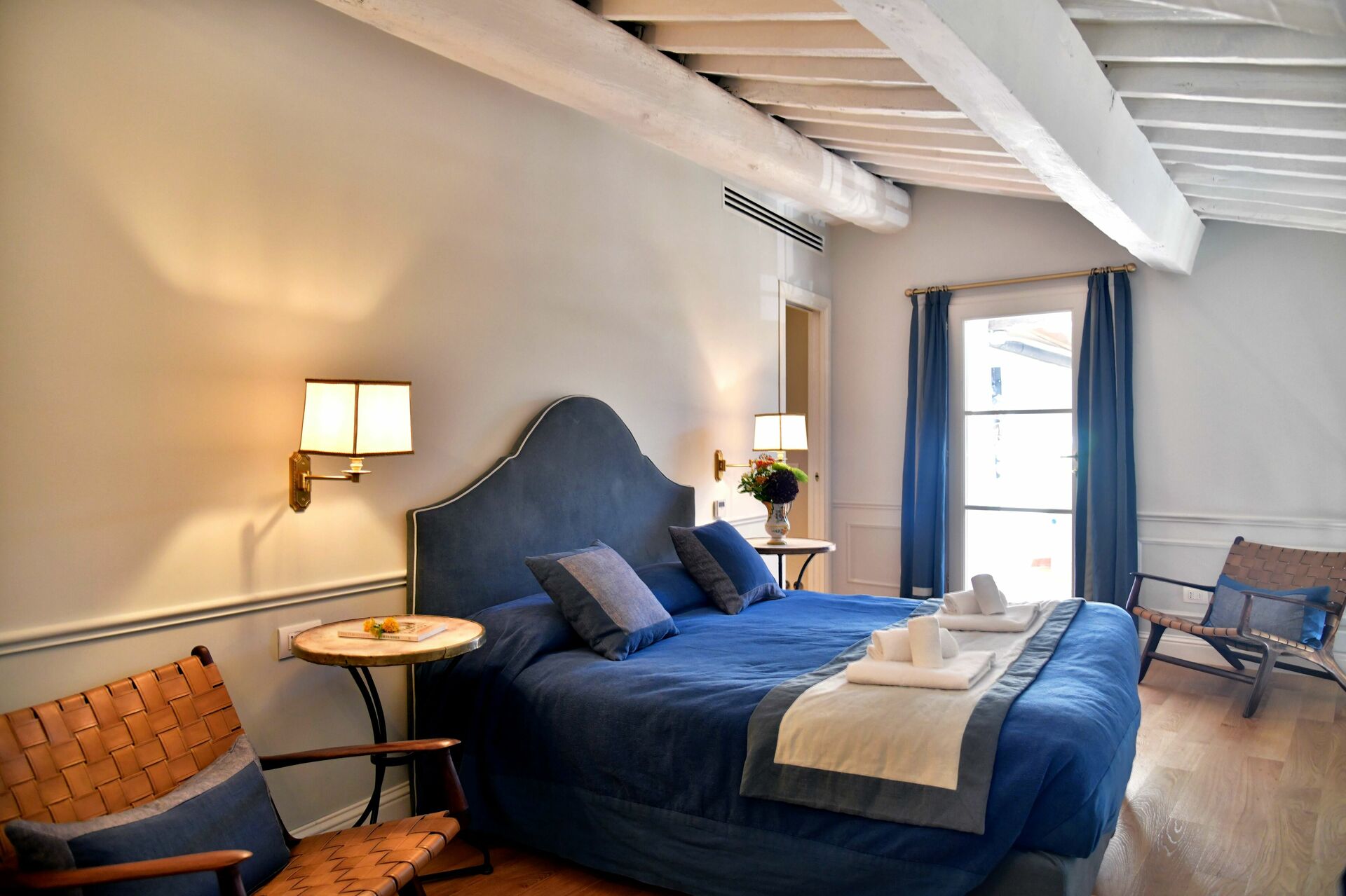 Bedroom + Ensuite Bathroom: double bed (length: 200m, width: 160m), WIFI internet, internet, air conditioning, satellite tv, television, safe, basin, toilet, bidet, shower, hairdryer.