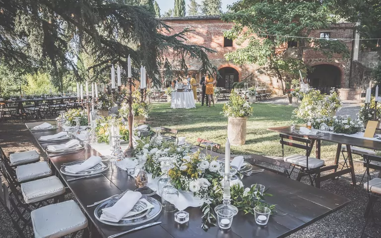 If you have been considering a destination wedding in the Tuscan countryside, then Castelletto is just perfect and if you're looking for a romantic wedding venue then it is ideal. Located in a perfect position from which to explore the rest of Tuscany, you will have endless options nearby to get stunning wedding photography to commemorate your unforgettable wedding in Tuscany. The venue can comfortably accommodate all sorts of Italian weddings with a spacious and pretty indoor dining space looking out onto the Italian garden that can seat a wedding of around 120 people as well as extensive grounds where an area for the wedding ceremony, multiple tables for the meal, a dancefloor and bands, and more can be set up for outdoor weddings if you want to have more guests.
