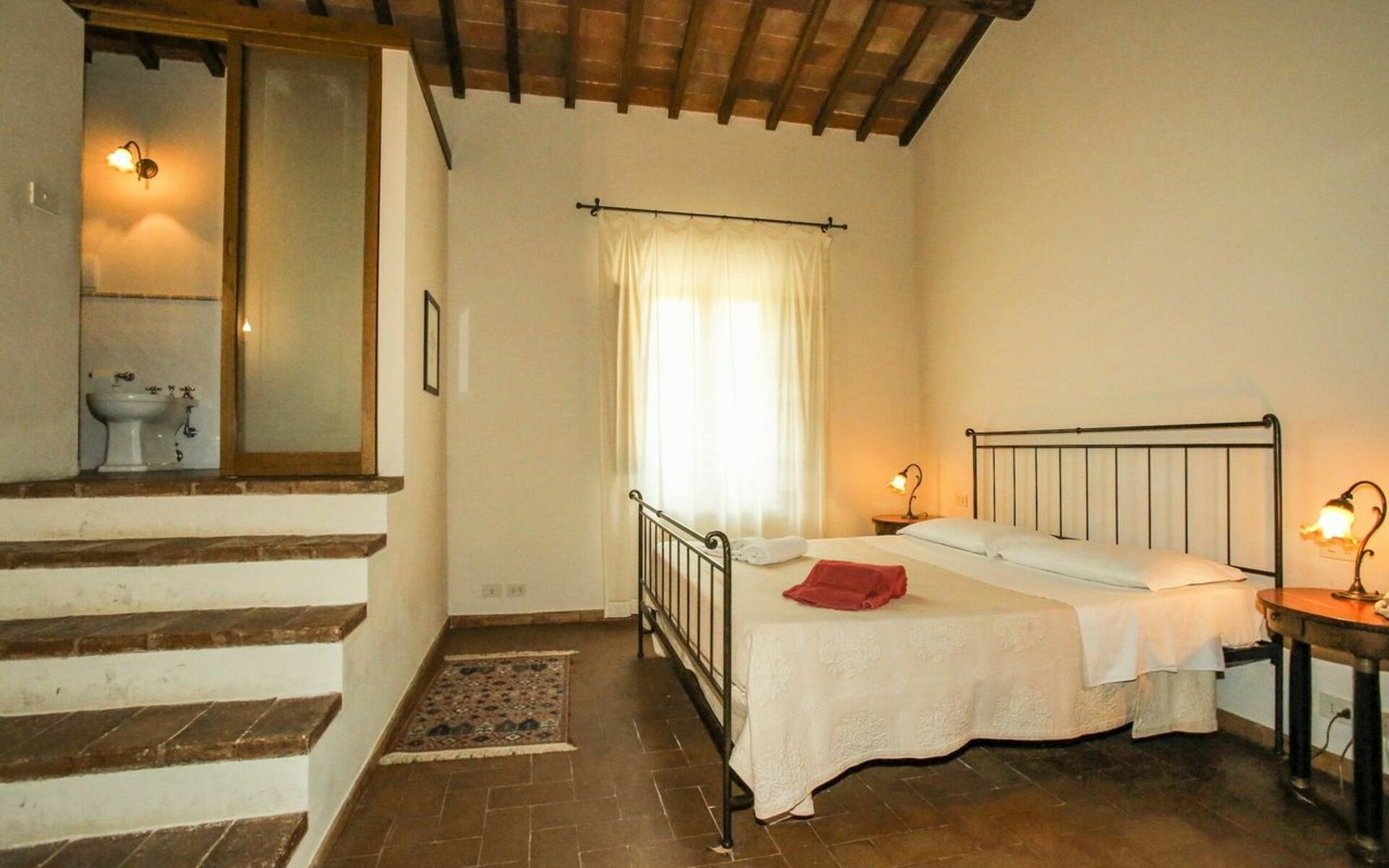 Bedroom + Ensuite Bathroom 2: air conditioning double bed, WIFI internet, basin, bidet, shower, hairdryer.