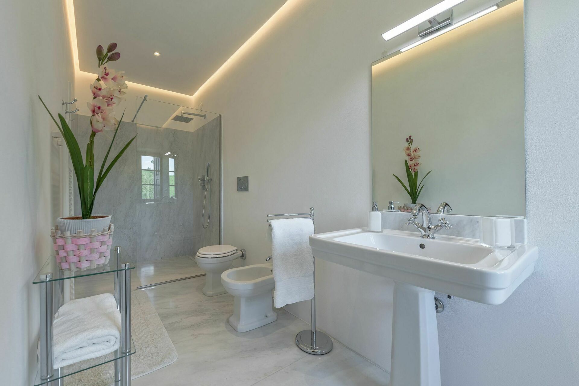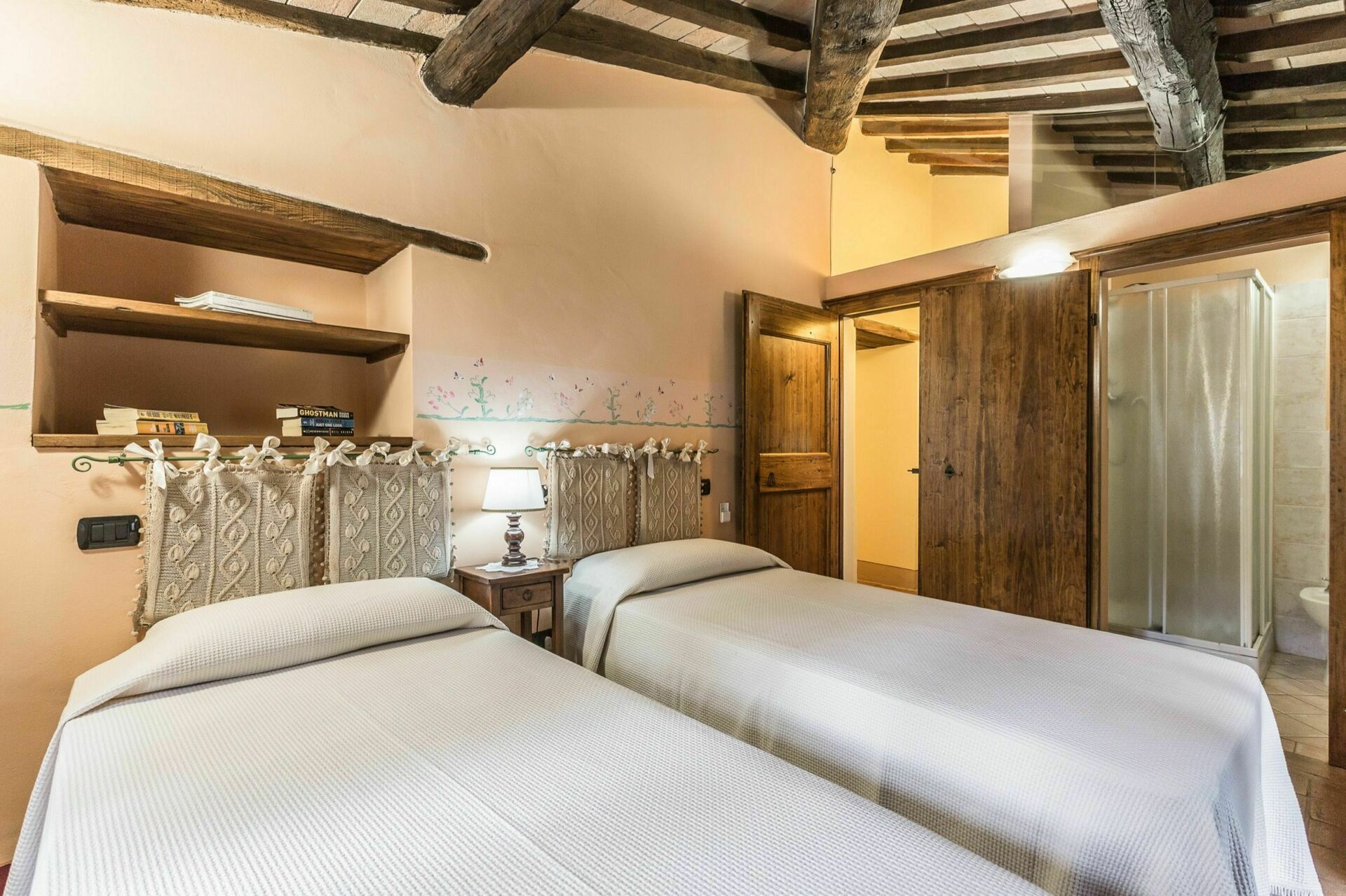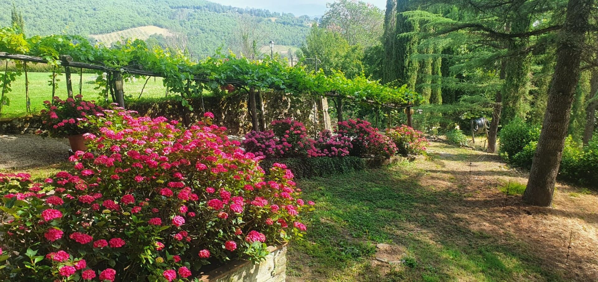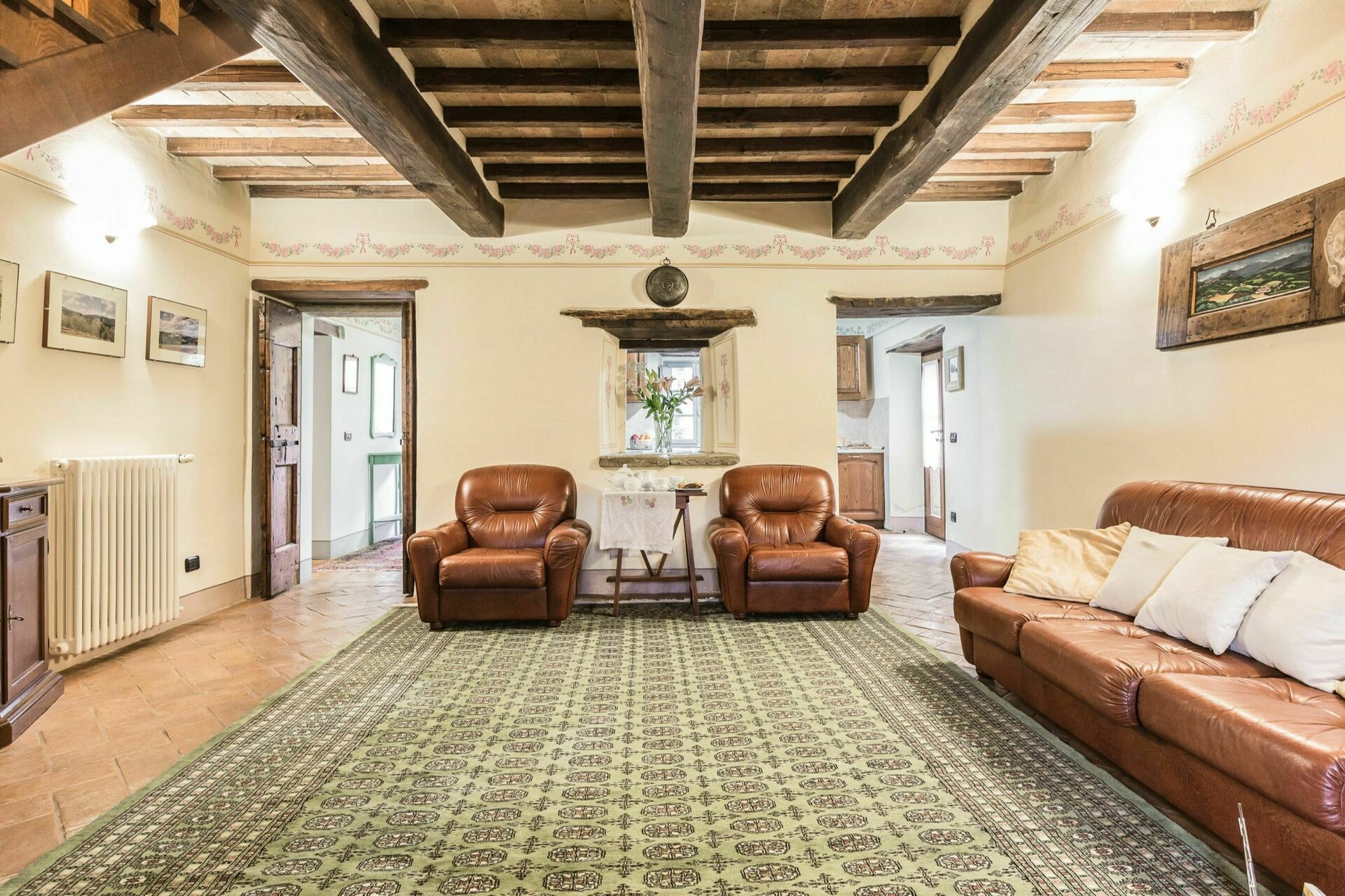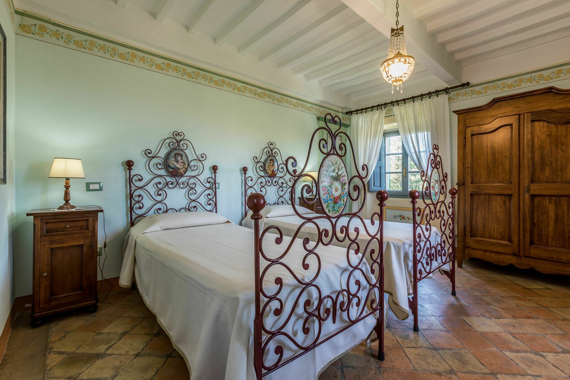 The two properties are full of character but they are only made more appealing by the outdoor space of this estate with the woods; the three hectares of groomed gardens across three terraces; the endless outdoor dining areas and benches taking in pretty views of the Tuscan countryside for outdoor meals or escaping with a coffee and a good book for a while; and two swimming pools (one of which 12 x 6 mt; depth: 1,5 mt) with sun-loungers, a heated Jacuzzi (avaliable on request), and an old stone barn that has been made into a large shower and changing room with bathroom facilities. This wonderful exterior space of the estate is ideal for an outdoor wedding and means that incredible wedding meals can be arranged at tables set up on those terraces taking in sweeping views across the rolling hills of the Tuscan landscape, wedding ceremonies can take place in the pretty Italian garden with flowers all around, and your guests have plenty to do and keep themselves occupied with around the special day, allowing everyone to make incredible memories. For your wedding photography, too, there are endless stunning backdrops to perfectly capture your magical and romantic wedding in this fairytale setting.