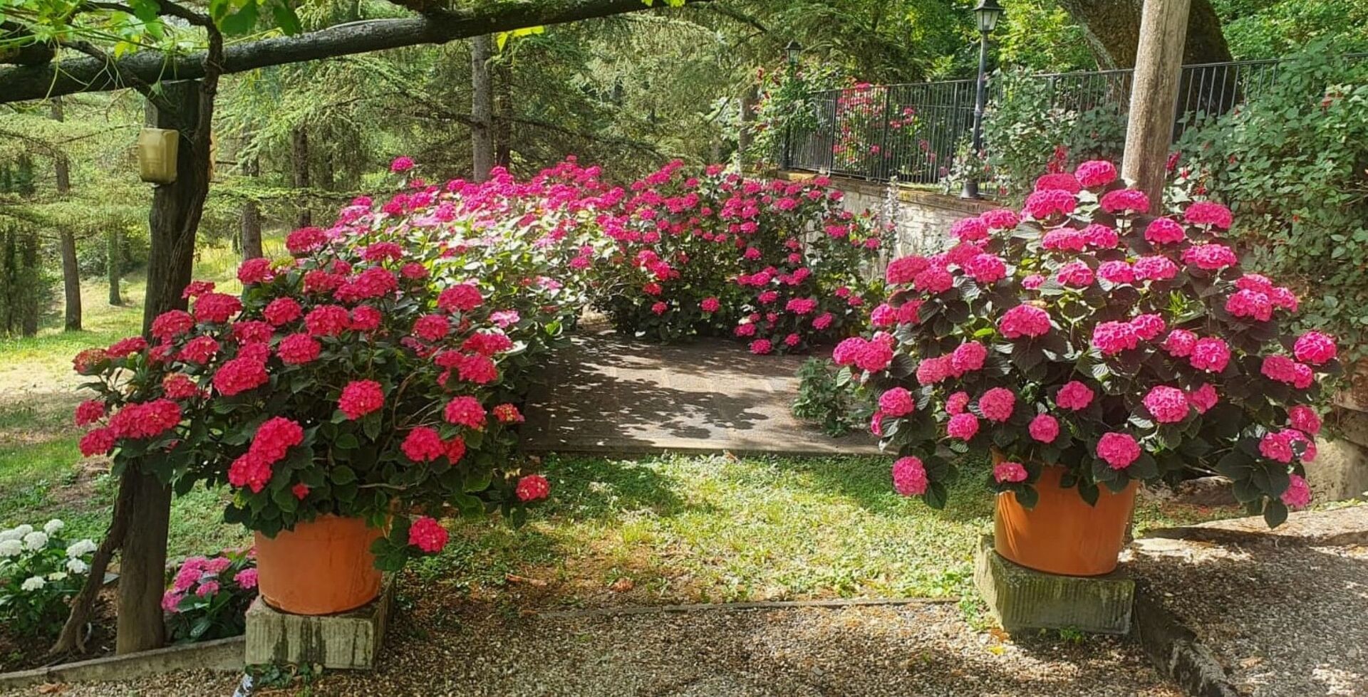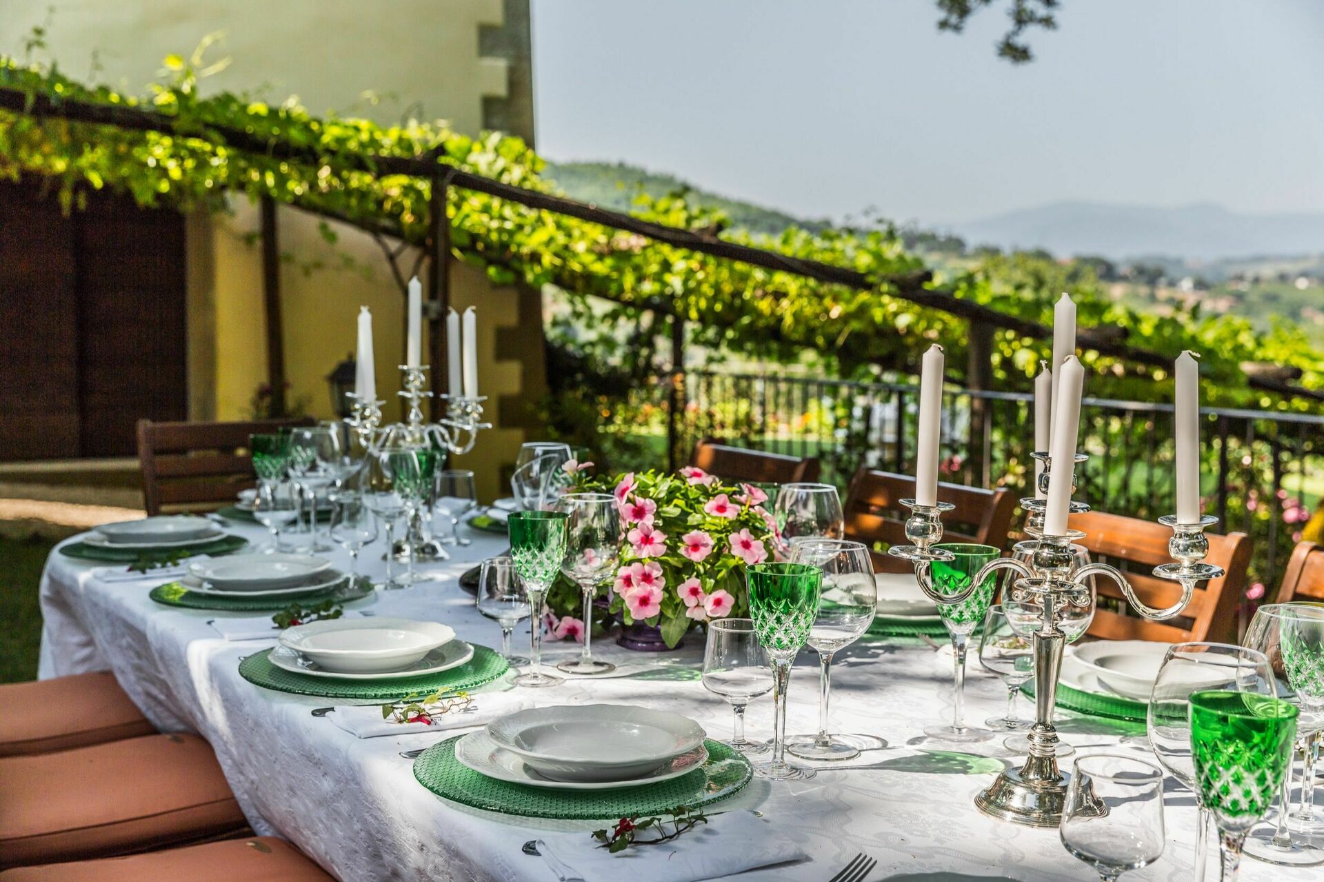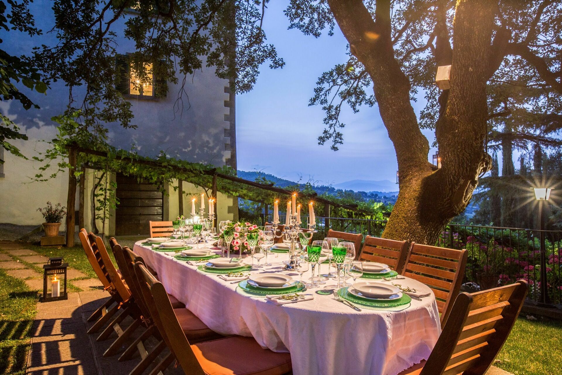 Both typical stone-faced Tuscan villas with terracotta roofs, Palazzo Rosadi is the larger property with six bedrooms and seven bathrooms. Palazzo Rosadi also has a more grand and formal appearance and large interiors with high ceilings and spacious rooms. The decor is elegant with chic bedrooms, a large open-plan living and dining space, pretty little sitting rooms, a charming country kitchen, big bathrooms, and lots of wonderful details such as antique furniture, painted decorative patterns and designs on walls and ceilings, and more. Torre del Cielo, meanwhile, has five bedrooms and bathrooms and looks more like a romantic farmhouse nestled into a gorgeous garden that is alive with blooms. However, do not be deceived. It is still a relatively large villa with spacious interiors featuring exposed beam ceilings and stone walls, pretty bedrooms that really look like something from a storybook, a lovely big kitchen, and an open-plan dining and living room that boasts a massive fireplace. Both houses also boast air-conditioning in all of the bedrooms and WIFI throughout the properties. If you are thinking of getting married in Italy and you are looking for a wedding venue in Tuscany that can house both wedding receptions and your guests, then these romantic wedding villas make for the perfect setting.