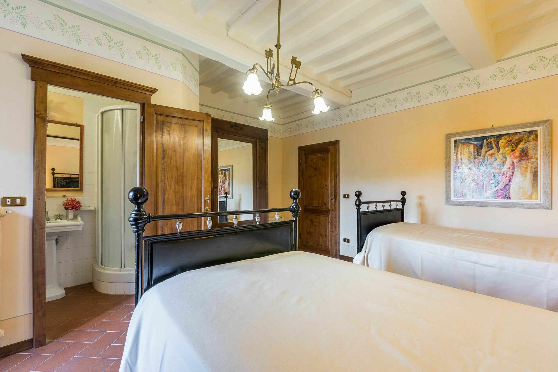 Bedroom + Ensuite Bathroom 4: two single beds, WIFI internet, air conditioning, mosquito net, basin, toilet, bidet, shower, hairdryer.