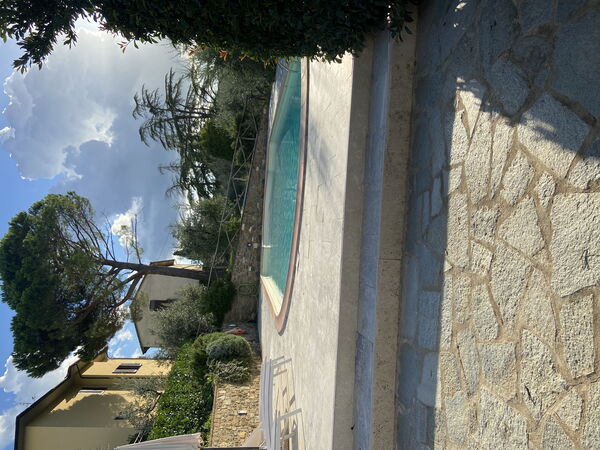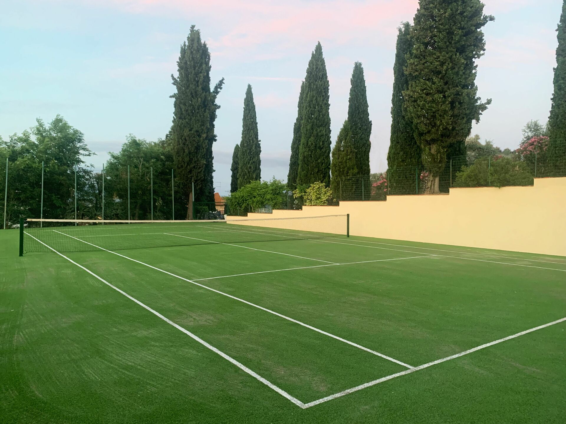 Garden: swimming pool (length: 10m, width: 5m, max. depth: 0.8m, min. depth: 2m, outdoor, fenced), WIFI internet, barbecue, dining table, gazebo, eight sunbeds, fenced, tennis court.