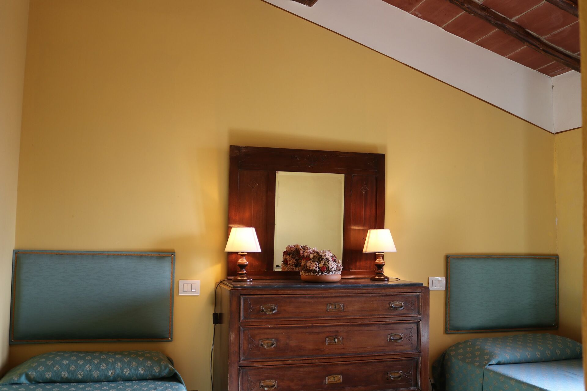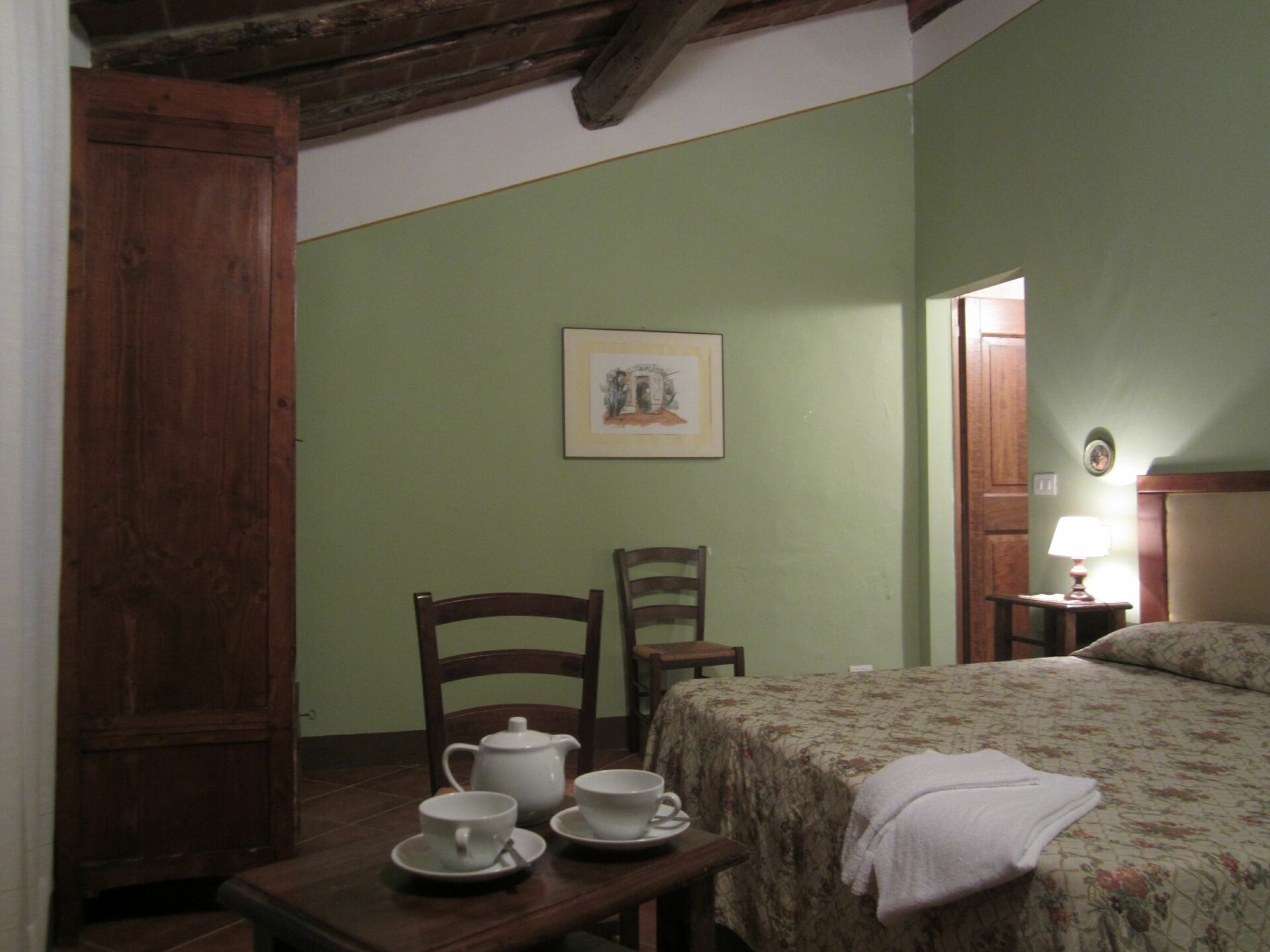 A little further down there are the two swimming pools, the tennis court and the equipped parks of the Fattoria del Colle which can be used in common with the other guests of the farmhouse.
