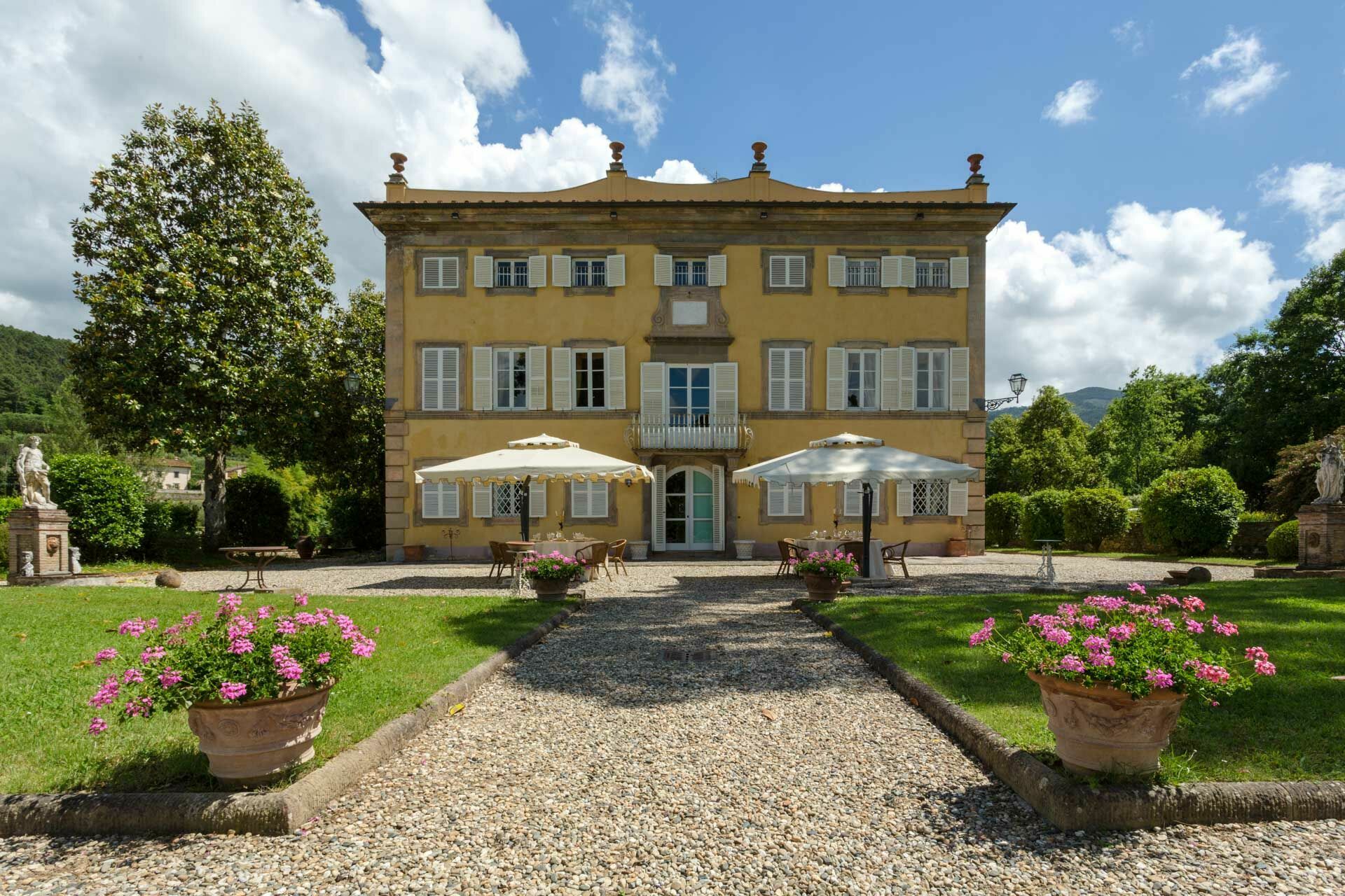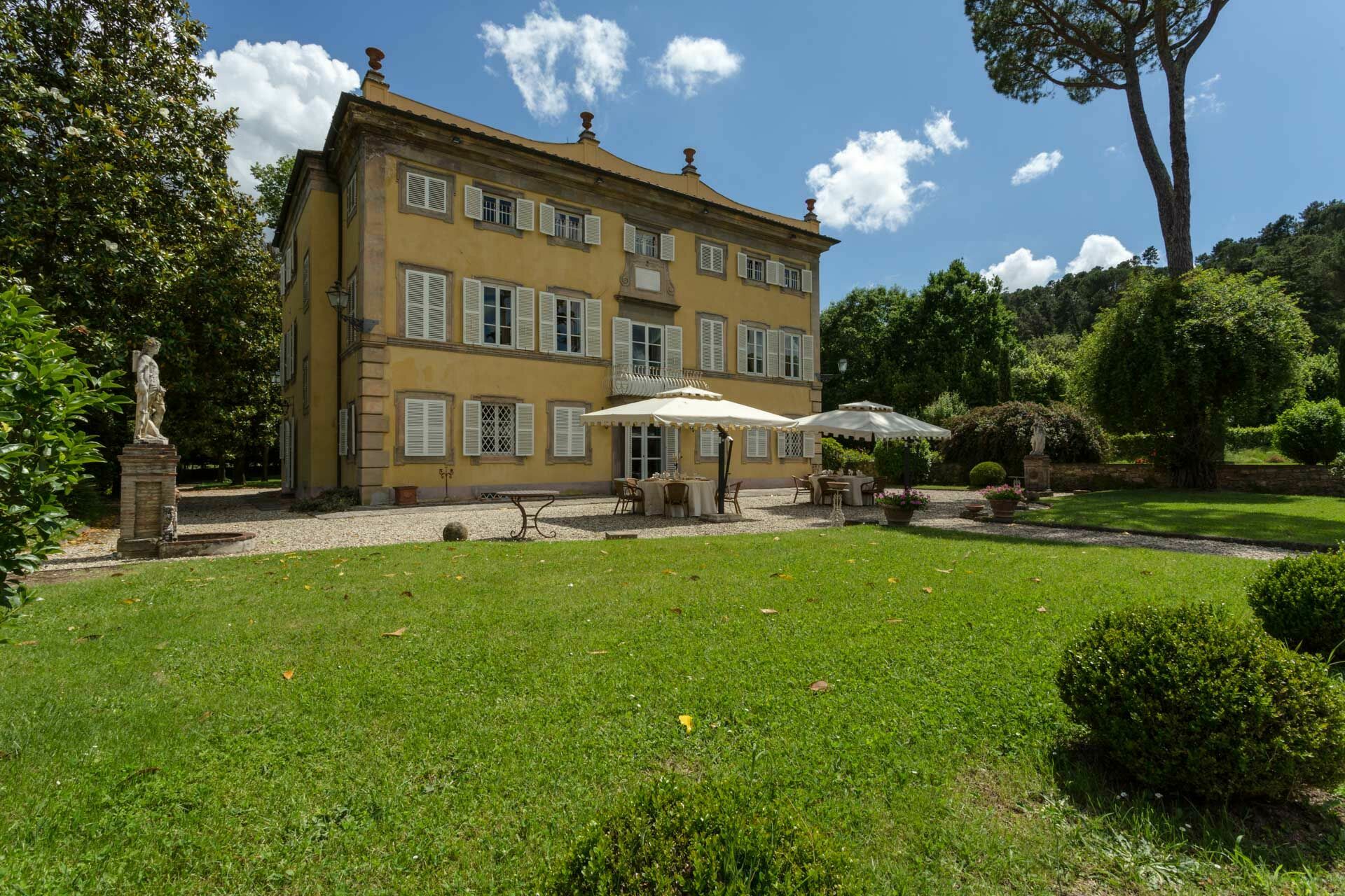 exclusive and elegant atmosphere. The villa is nestled in the midst of tranquil Italian gardens through which
