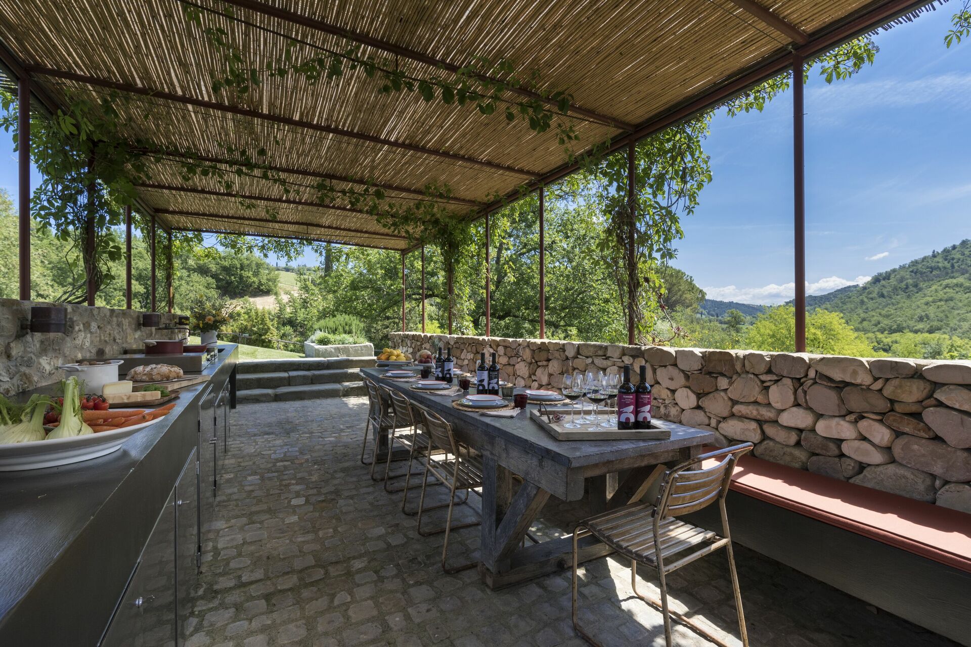 After arriving at Villa Calzaiolo you’ll find a beautiful clean well-maintained property ideal for a relaxing holiday in Tuscany. After a busy day of visiting museums, spend some time with friends and family poolside enjoying a glass of wine - a perfect way to unwind at the end the day. Sharing a meal with friends and family is a big part of the Tuscan culture. Take advantage of the kitchen to prepare meals using local produce while on your vacation. The kitchen includes coffee machine, microwave and refrigerator, as well as, plenty of tableware and cutlery for up to ten people. Dine 'al fresco' like a real Tuscan, the fully furnished garden is the ideal setting to enjoy food, family and the beautiful Tuscan weather.