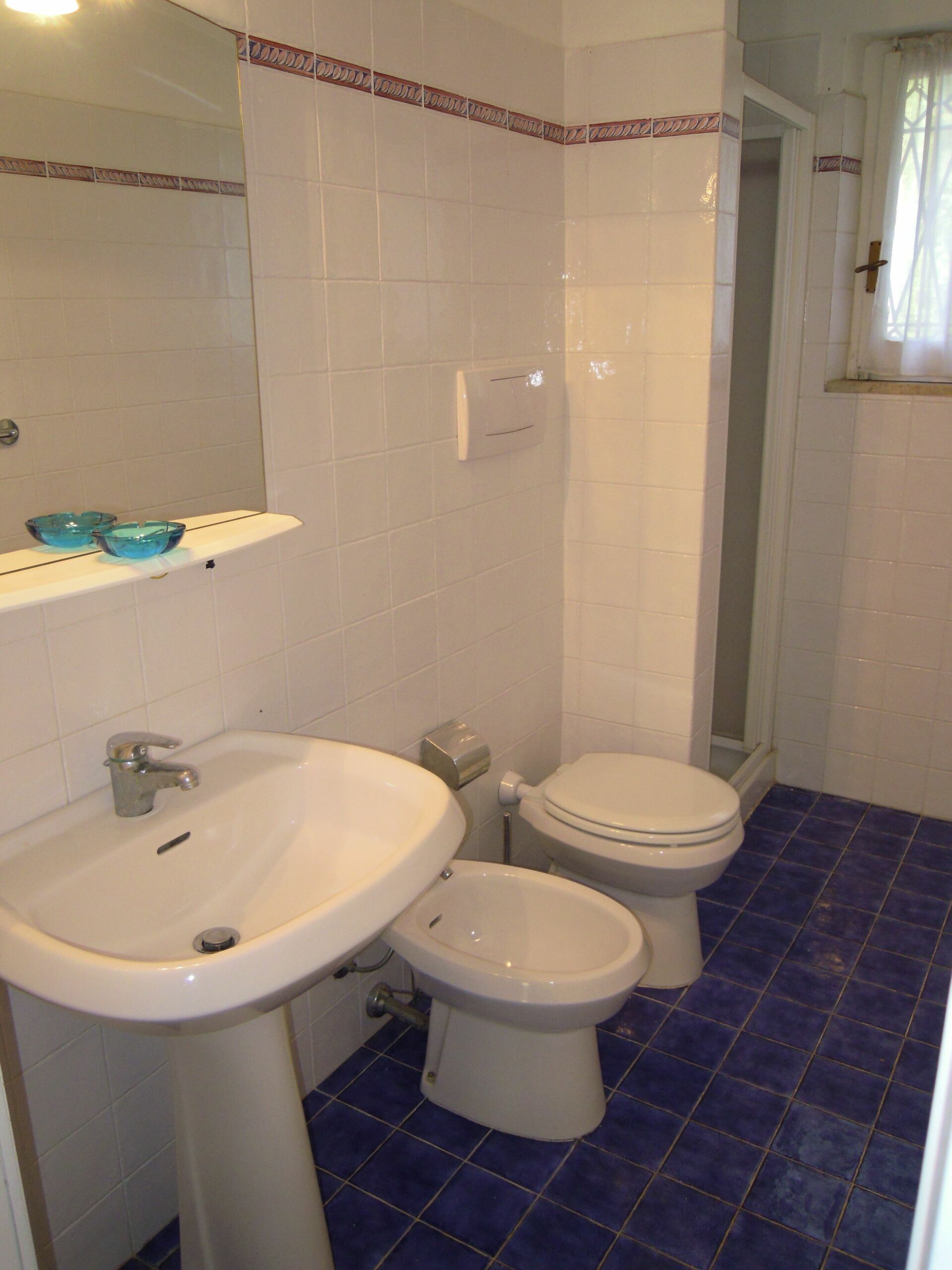 Bathroom: basin, toilet, bidet, bathtub.