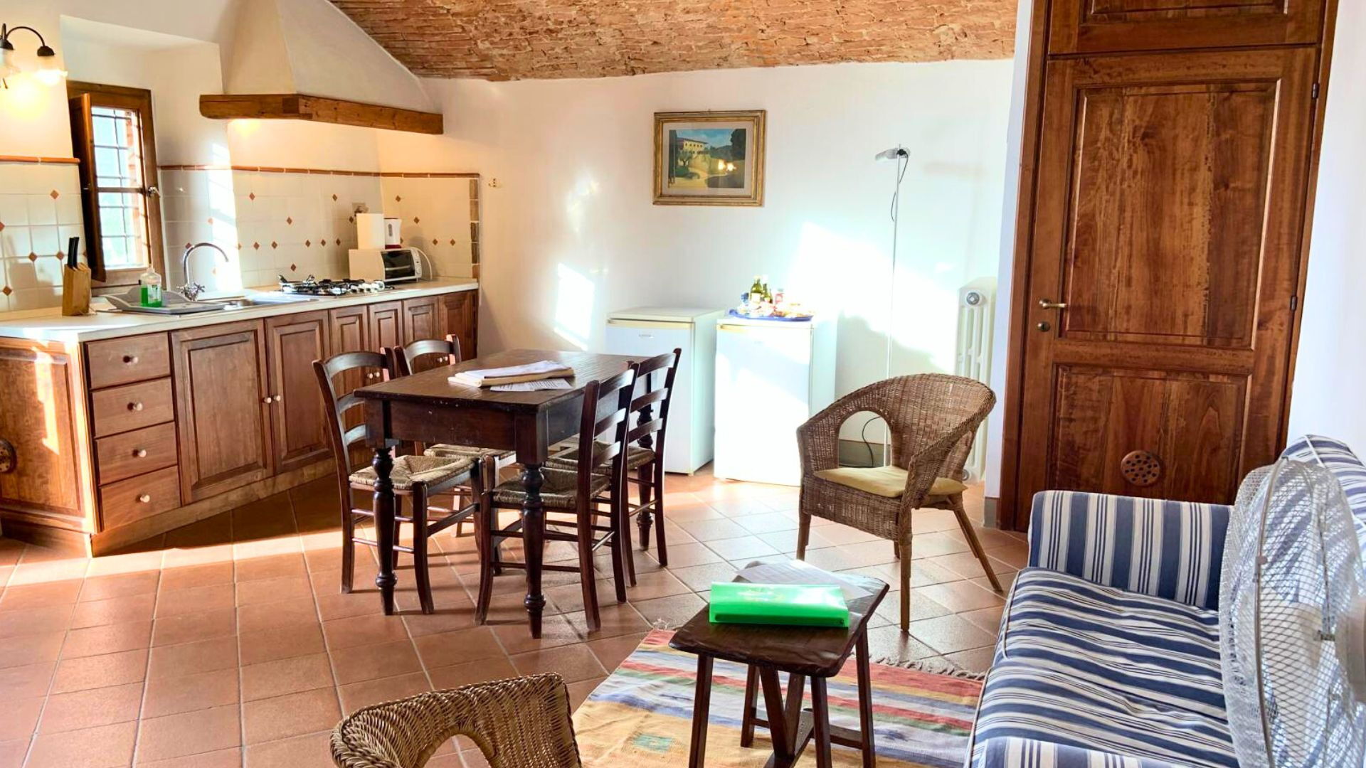 Sharing a meal with friends and family is a big part of the Tuscan culture. Take advantage of the well-equipped kitchen to prepare meals using local produce while on your vacation. The kitchen includes coffee machine and refrigerator, as well as, plenty of tableware and cutlery for up to four people.