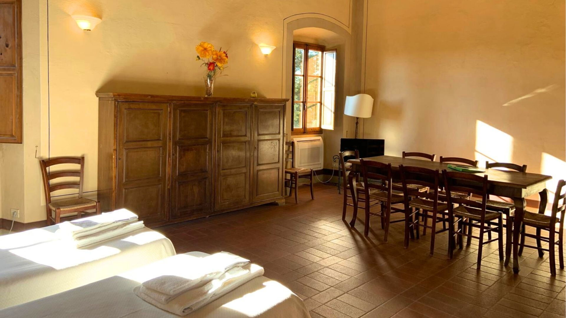 Sharing a meal with friends and family is a huge part of the Tuscan culture. Take advantage of the well-equipped kitchen to prepare meals using local produce while on your vacation. The kitchen includes coffee machine and refrigerator, as well as, plenty of tableware and cutlery for up to four guests.
