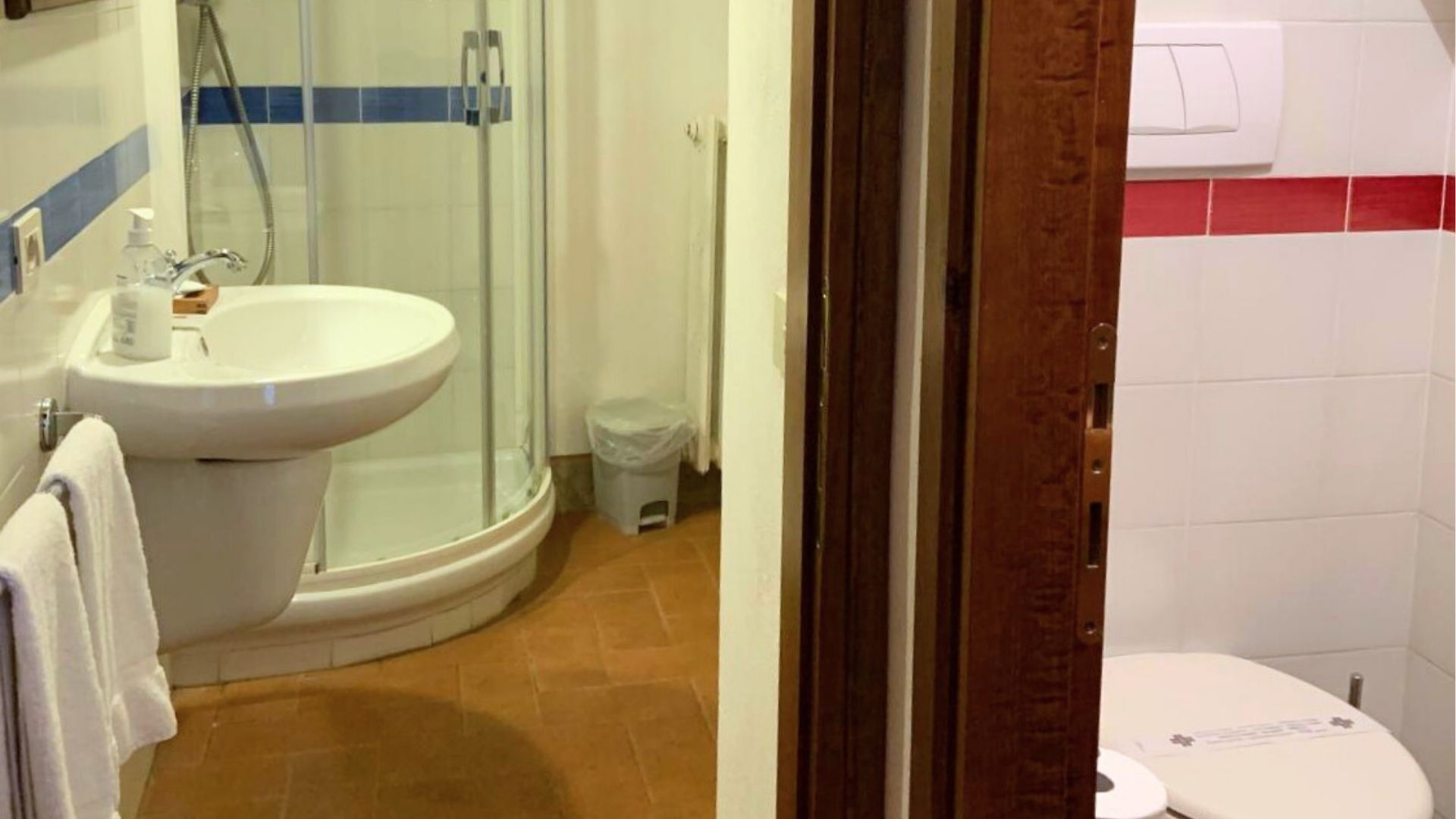 Bathroom: basin, toilet, bidet, shower, hairdryer.