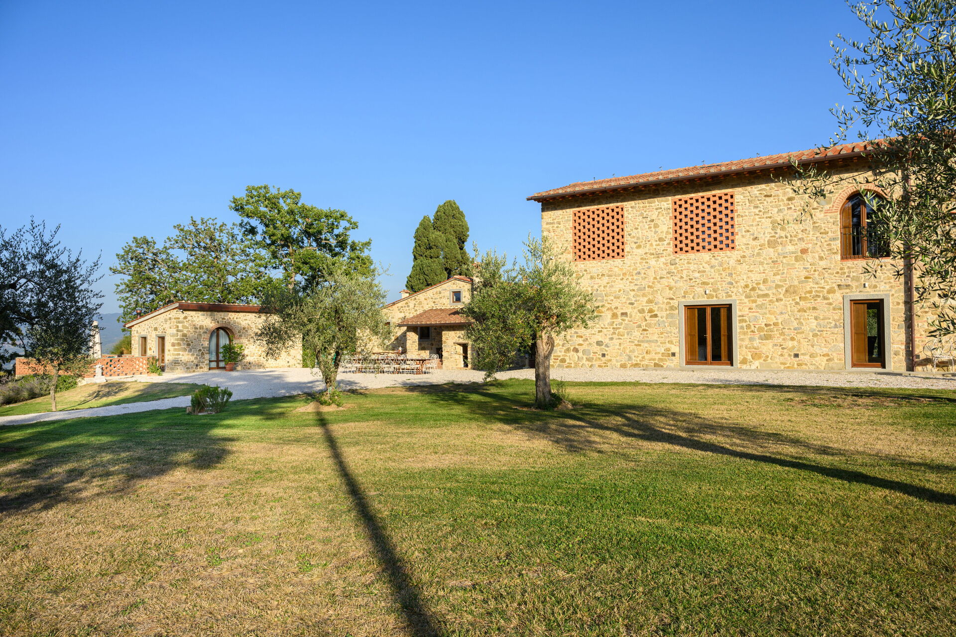 After arriving you’ll find a nice clean well-maintained property with views of the hills ideal for a splendid vacation in Tuscany. Regardless of how you spend your days - sightseeing, visiting museums, shopping or just driving in the countryside, when you arrive home you can relax with your family and friends at the pool for a perfect ending to another day in Tuscany. Dining with friends and family is a huge part of the Tuscan culture. Take advantage of the kitchen to prepare meals using local produce while on your vacation. The kitchen includes coffee machine and microwave, as well as, plenty of tableware and cutlery for up to 20 people. Dine 'al fresco' like a real Tuscan, the fully furnished patio is the perfect setting to enjoy food, family and the nice Tuscan weather.