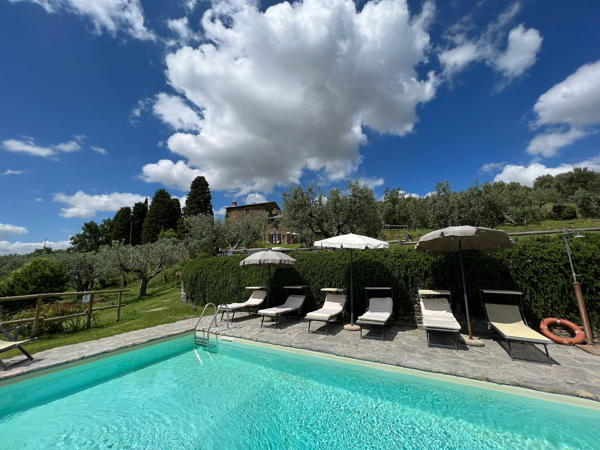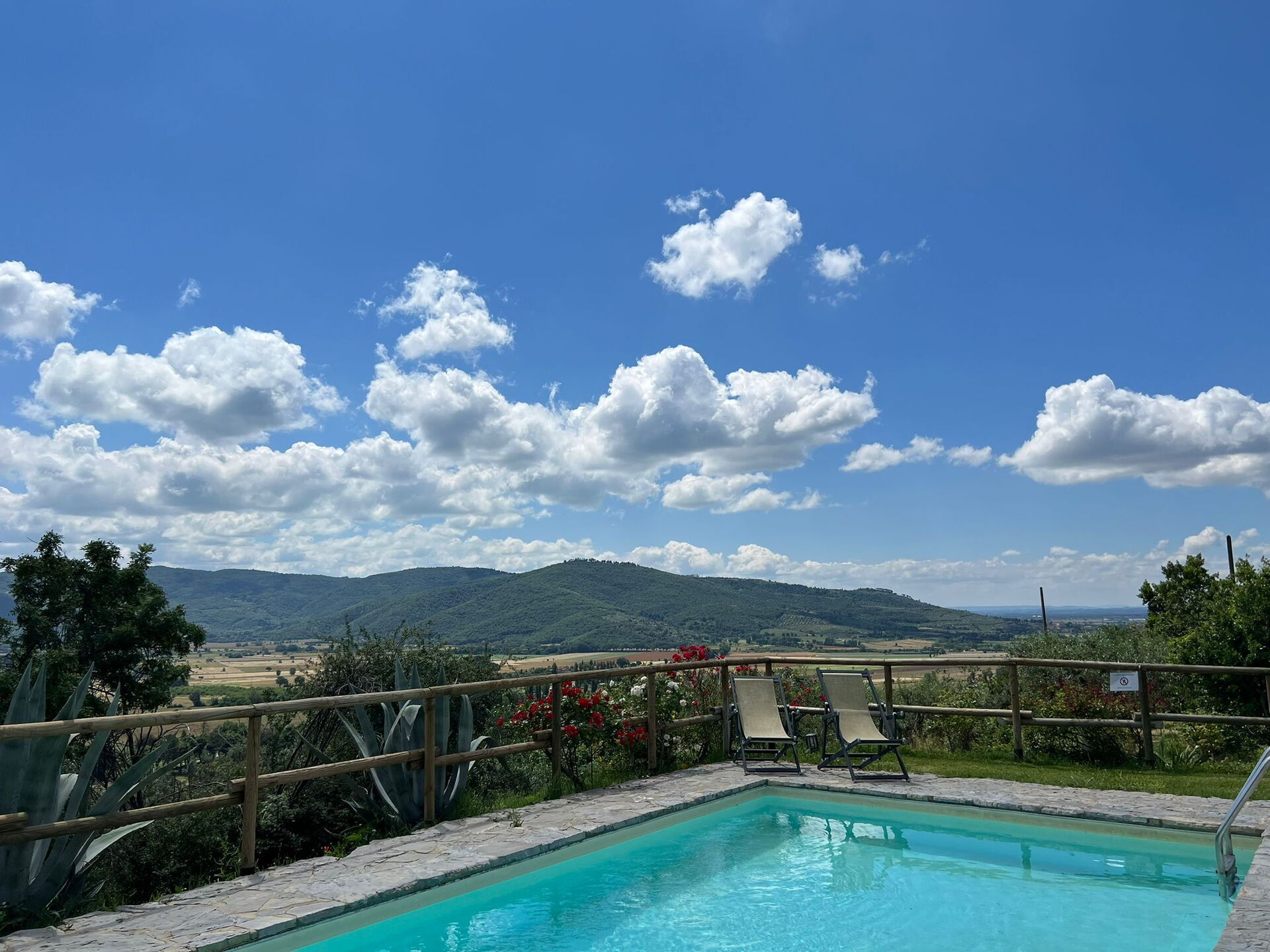 When you arrive at Villa Patrizia you’ll find a beautiful clean well-maintained property with views of the mountains and the hills perfect for a peaceful vacation in Tuscany. For your enjoyment you will find a private pool where you can unwind while enjoying a nice cold beverage after a hectic day of sightseeing. If you enjoy cooking for family and friends there is a well-equipped kitchen including coffee machine, microwave, toaster, stove and refrigerator, as well as, plenty of tableware and cutlery for up to 12 people.