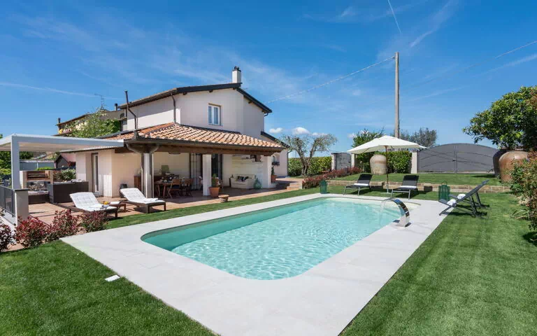The house is located in a small village, overlooking the hills of the countryside between Siena and Florence, recently renovated maintaining and enhancing the rustic style and at the same time equipped with every comfort. Country house "La Pace", 300 m a.s.l., renovated in 2022. In the hamlet di Pillo 3 km from the centre of Gambassi Terme, 5 km from the centre of Castelfiorentino, 35 km from the centre of Firenze, in a quiet, sunny, elevated position on top of a hill, 45 km from the sea, in the countryside. Private: garden 300 m2 (fenced), swimming pool (4 x 9 m, depth 120 cm, seasonal availability: 01.May. - 31.Oct.). Outdoor shower, garden furniture, barbecue. Heating available only from 01.Nov. - 04.Apr.. Linen change (suppl. charge extra). Towel change (suppl. charge extra). Cook on request (extra). Breakfast possible on request (extra). Motor access to the house (100 m via unmade road). Parking on the premises. E-charging station. Shop 3 km, grocery 3 km, supermarket 3 km, restaurant 3 km, bus stop 100 m, railway station "Castelfiorentino" 5 km, sandy beach "Cecina e Donoratico" 45 km, thermal baths "Casciana Terme" 50 km. Golf course (18 hole) 21 km. Nearby attractions: San Gimignano 22 km, San Miniato 24 km, Barberino Val d'Elsa 27 km, Volterra 32 km, Lajatico 35 km, Greve in Chianti 43 km. Please note: suitable for families.