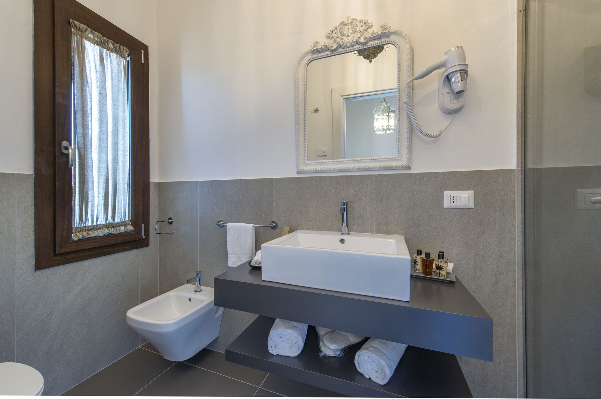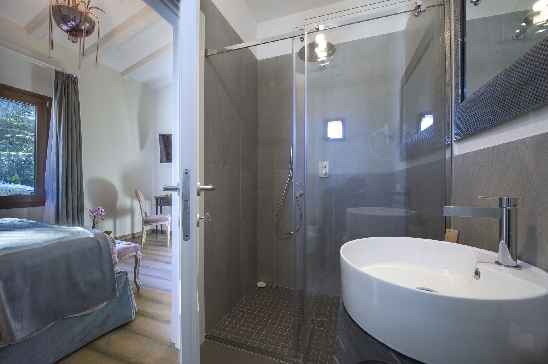 Bedroom + Ensuite Bathroom 4: double bed, WIFI internet, air conditioning, satellite tv, basin, toilet, bidet, shower.