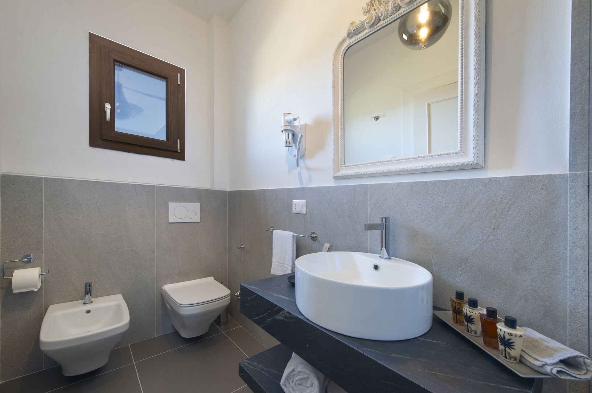 Bedroom + Ensuite Bathroom 1: double bed, WIFI internet, air conditioning, satellite tv, basin, toilet, bidet, shower.