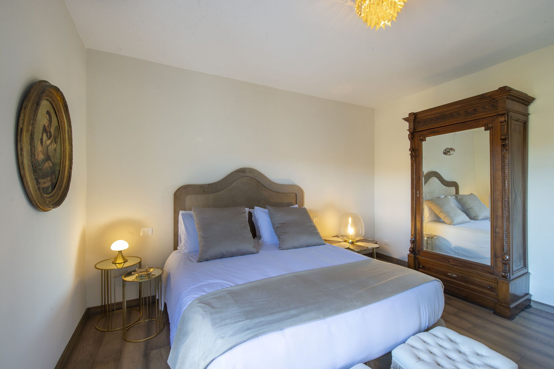 Bedroom + Ensuite Bathroom 2: double bed, WIFI internet, air conditioning, satellite tv, whirlpool bathtub, basin, toilet, bidet, shower.