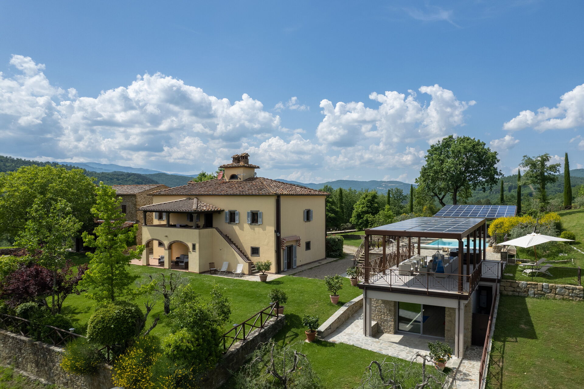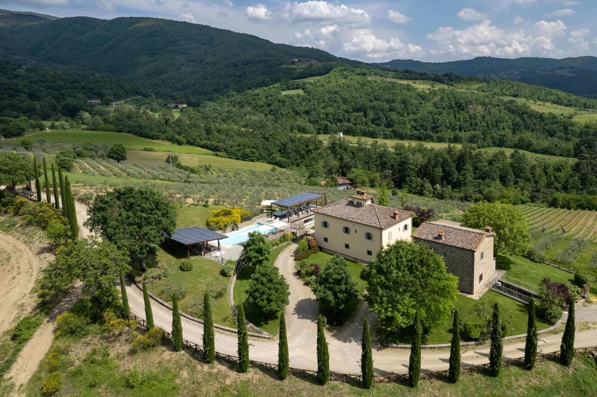 Villa Castelluccio - Arezzo, Toscana is located 3 km (2 mi) from Vogognano, Italy and only 23 km (14 mi) from Arezzo in the tourist area "Casentino Valley". Villa Castelluccio - Arezzo, Toscana is a nice holiday rental (340 sq m) with WiFi internet, hot tub and air conditioning. The property can sleep up to 14 guests comfortably in seven bedrooms with nine bathrooms.