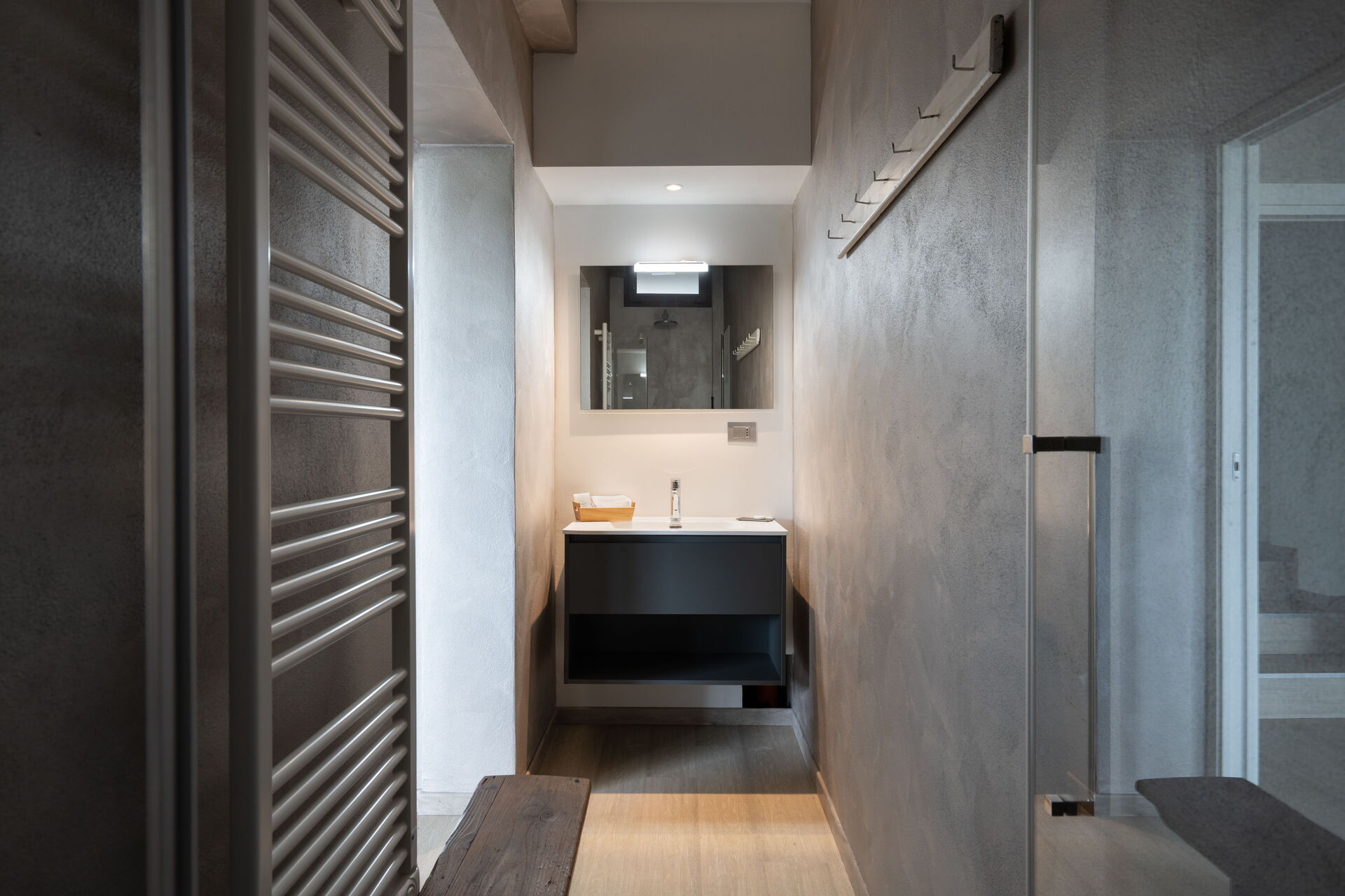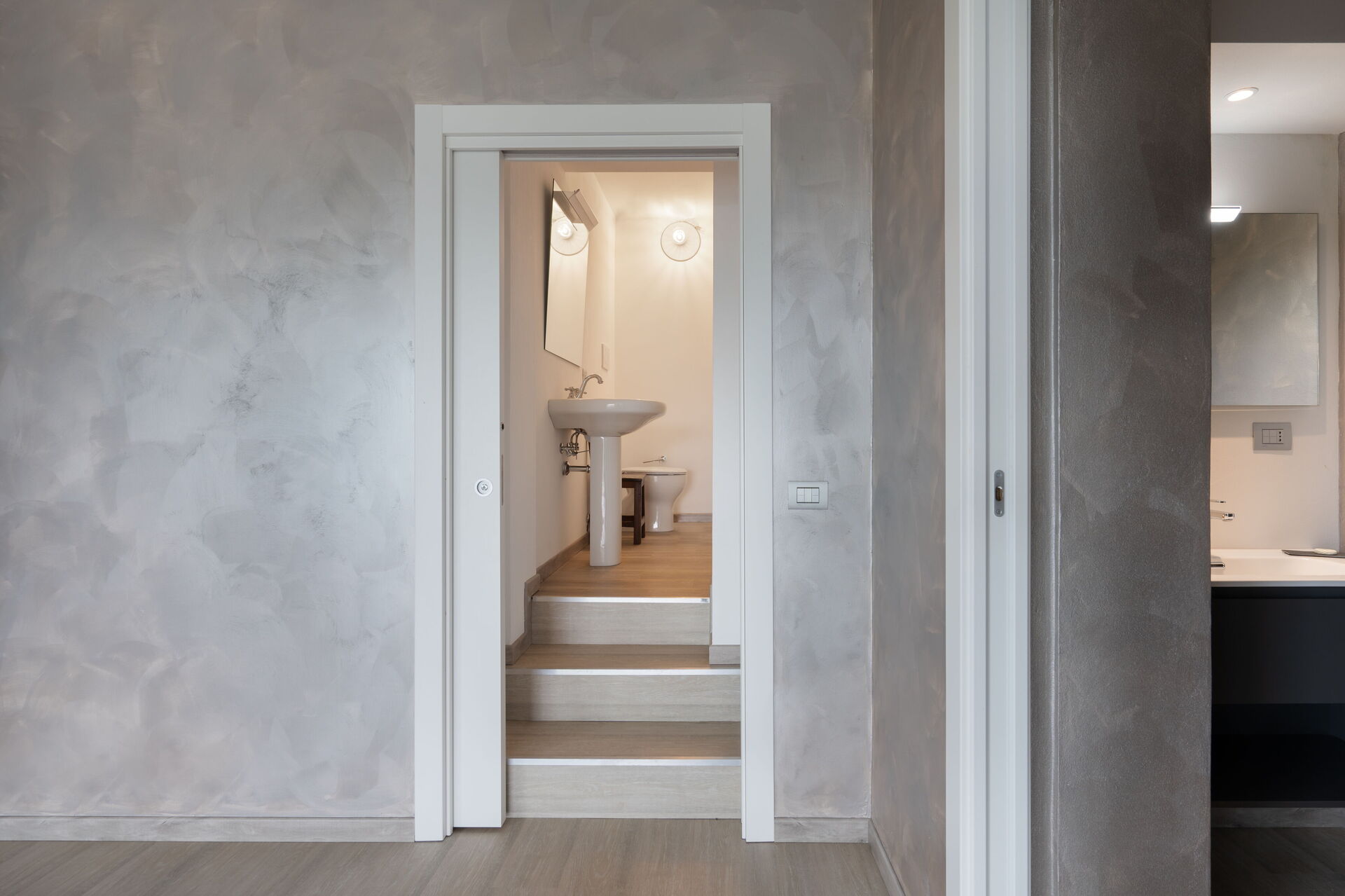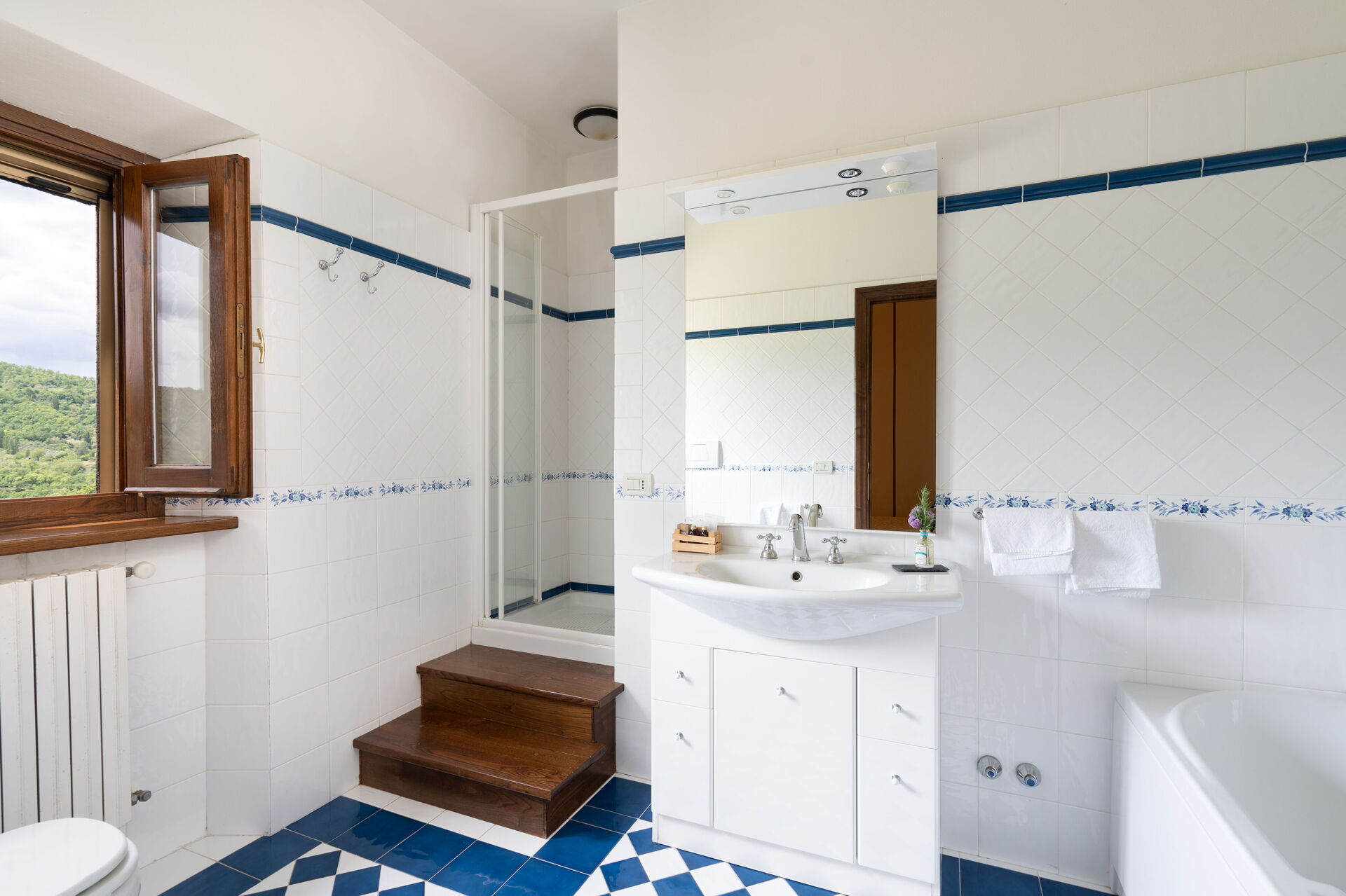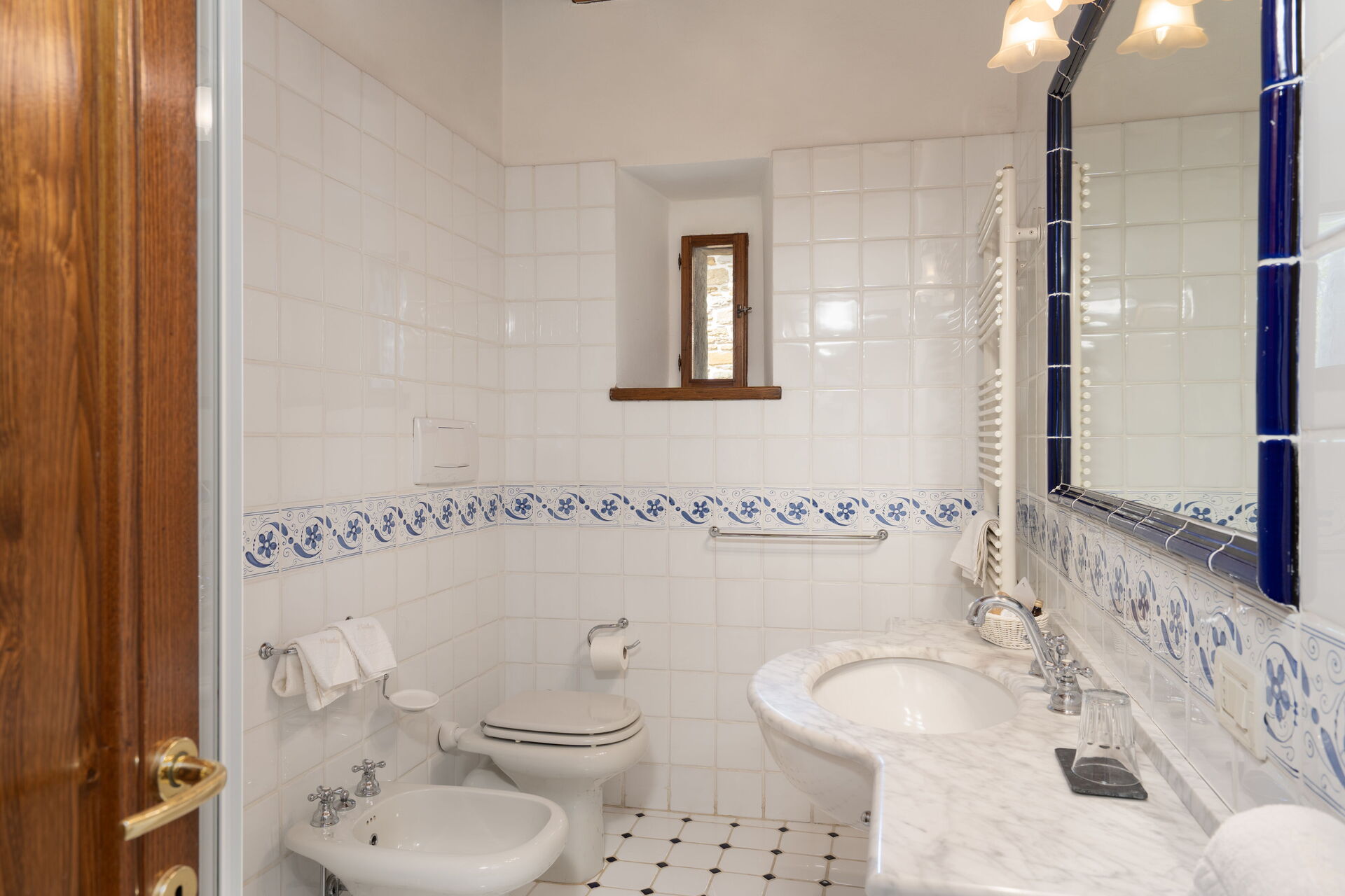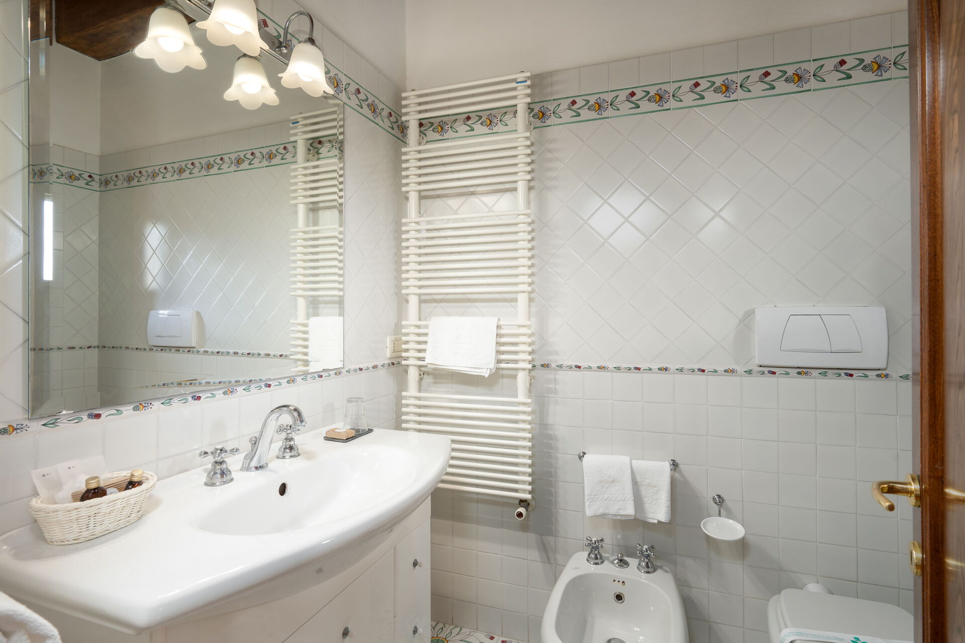 Bathroom: basin, toilet, bidet, shower.