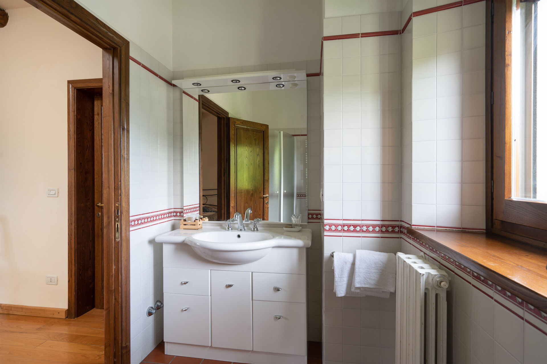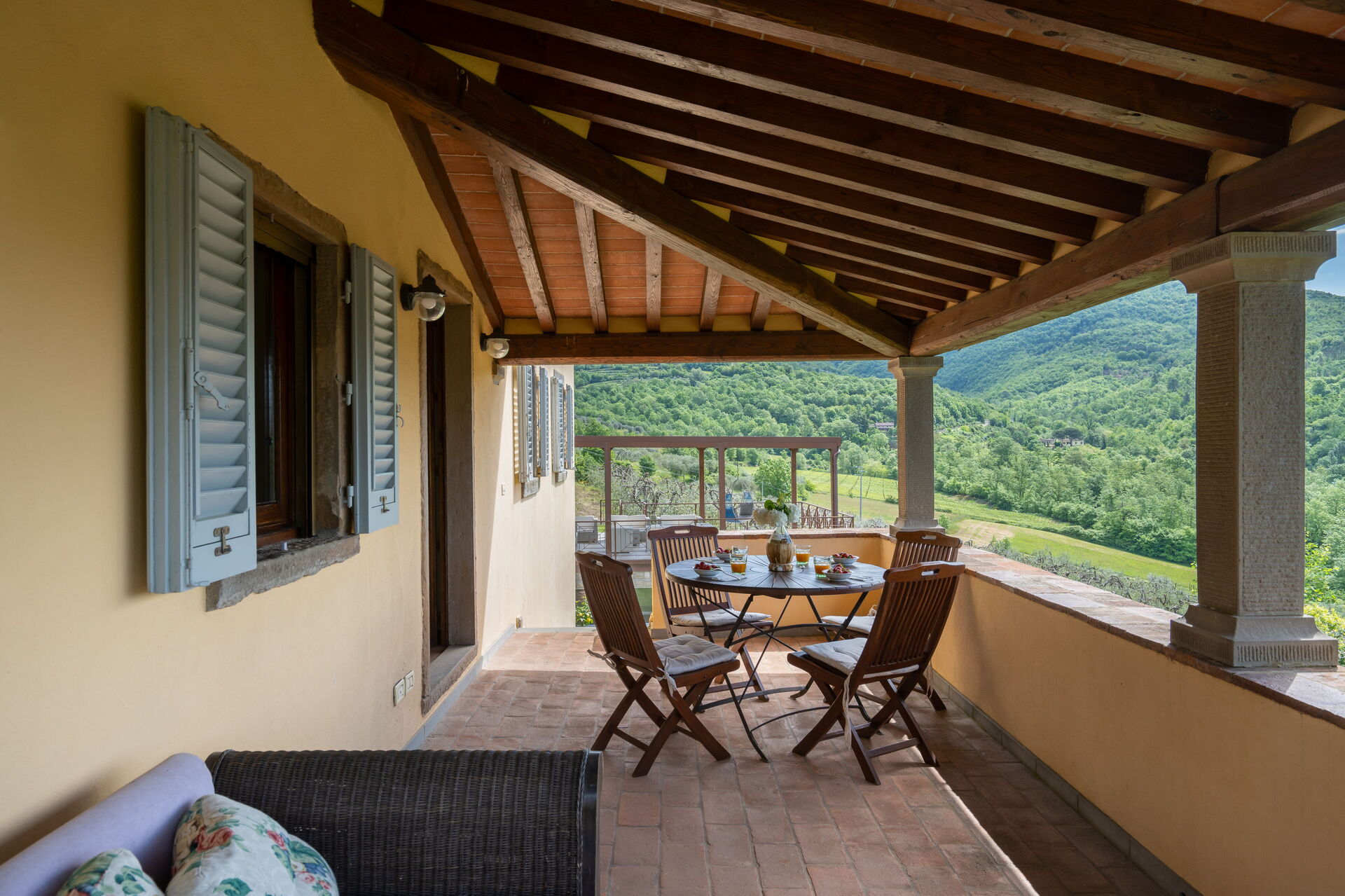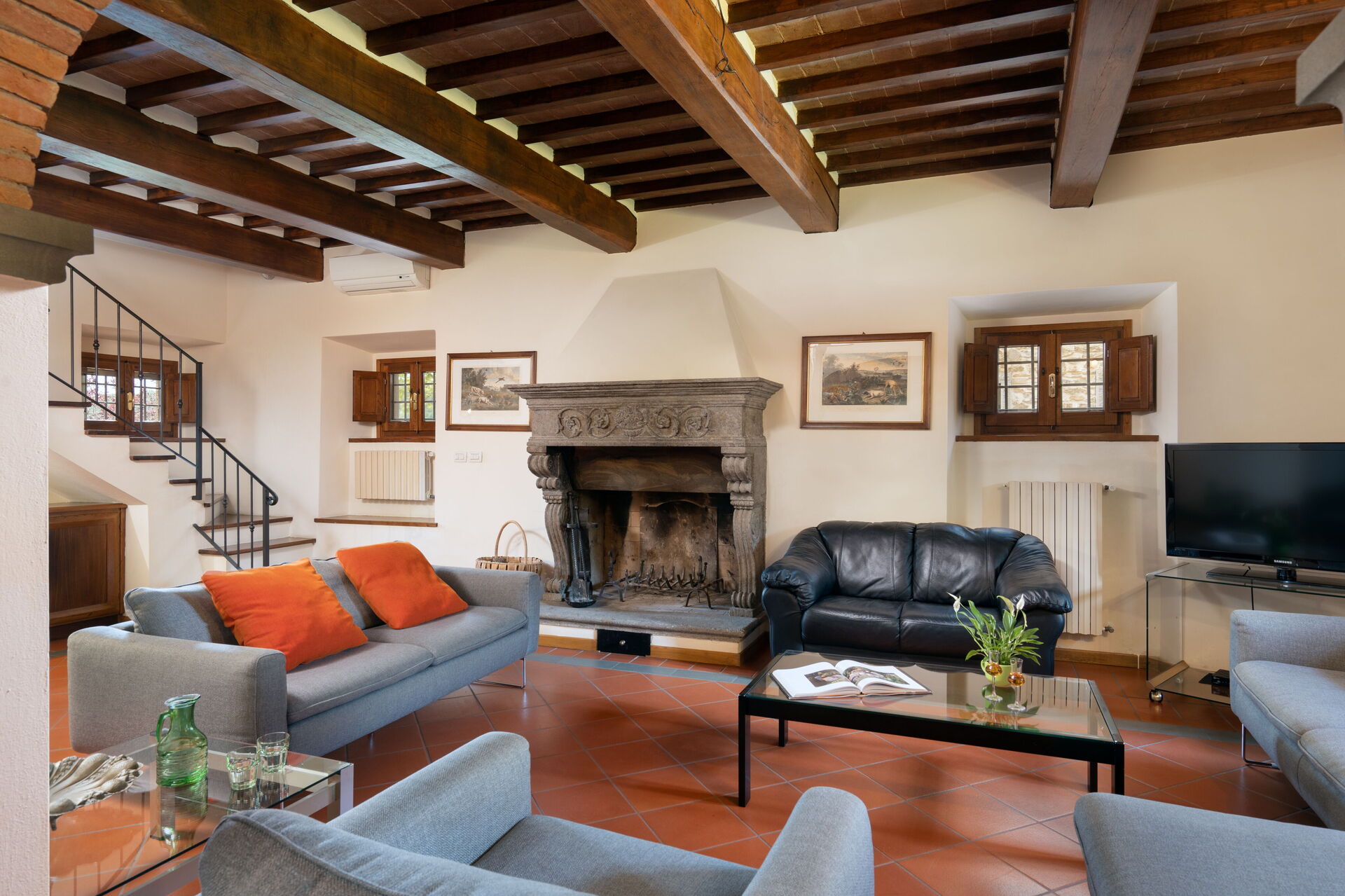 Upon arrival you will be greeted by the owner or manager where you’ll find a beautiful clean well-maintained property with views of the hills ideal for a peaceful vacation in Tuscany. After a hectic day of sightseeing, spend some time with friends and family poolside enjoying a glass of wine - a perfect way to relax at the end the day. For your pleasure, on the grounds there is a tennis court, barbecue grill, playground, hot tub and patio. If you enjoy cooking for family and friends there is a well-equipped kitchen including coffee machine, microwave, stove and refrigerator, as well as, plenty of tableware and cutlery for up to 14 people.