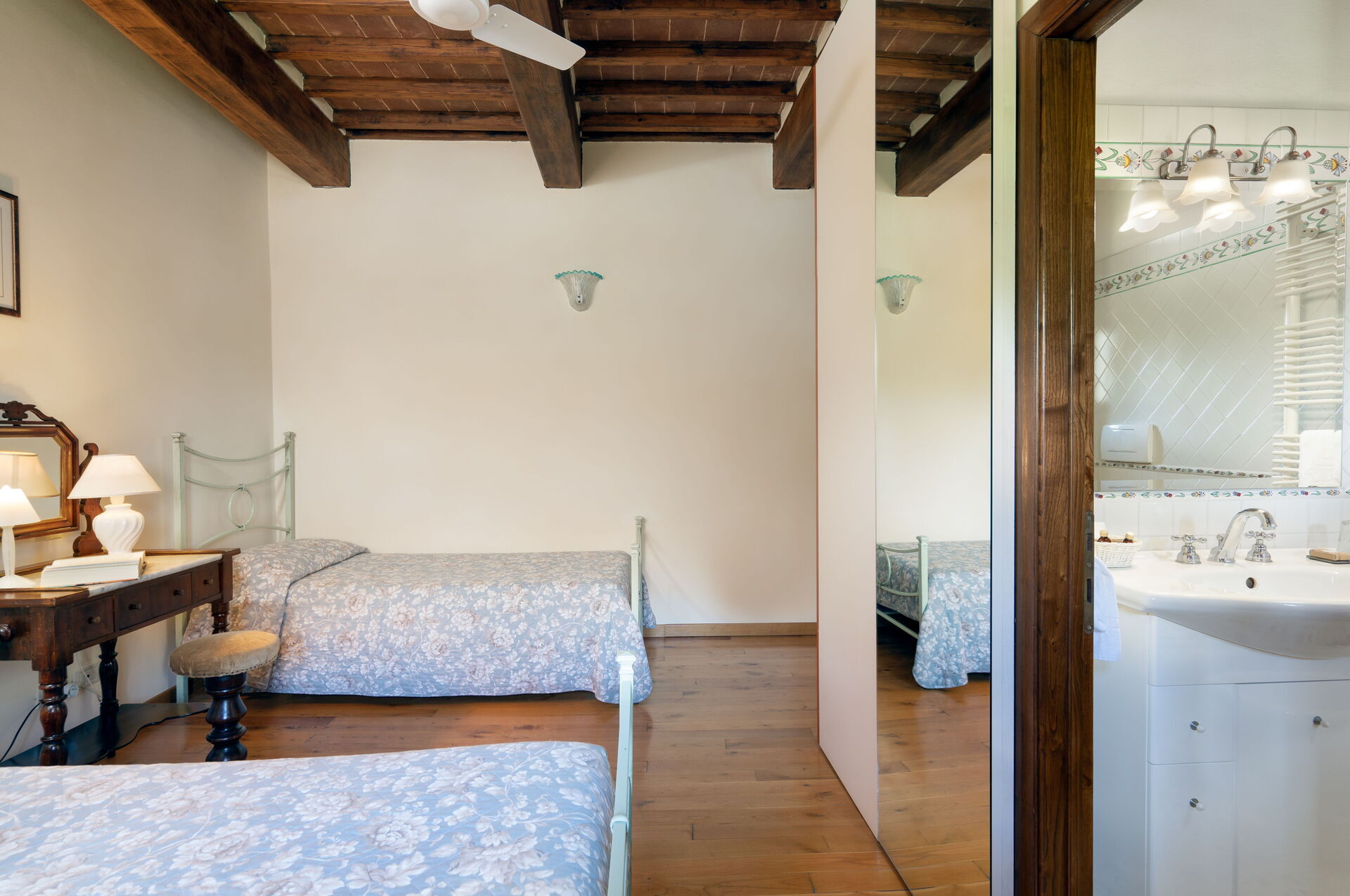 Bedroom + Ensuite Bathroom 3: two single beds, WIFI internet, air conditioning, mosquito net, basin, toilet, bidet, shower.