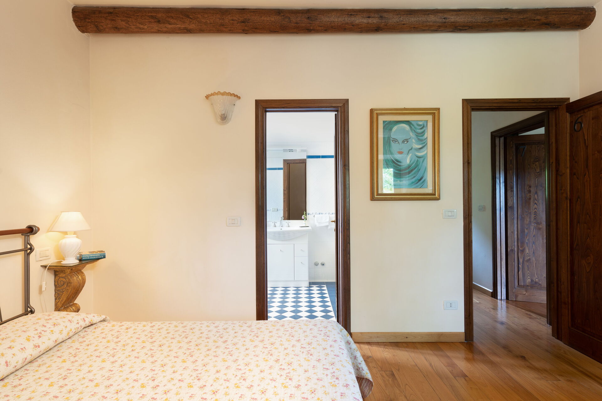 Bedroom + Ensuite Bathroom: double bed, WIFI internet, air conditioning, basin, toilet, bidet, shower, hairdryer.