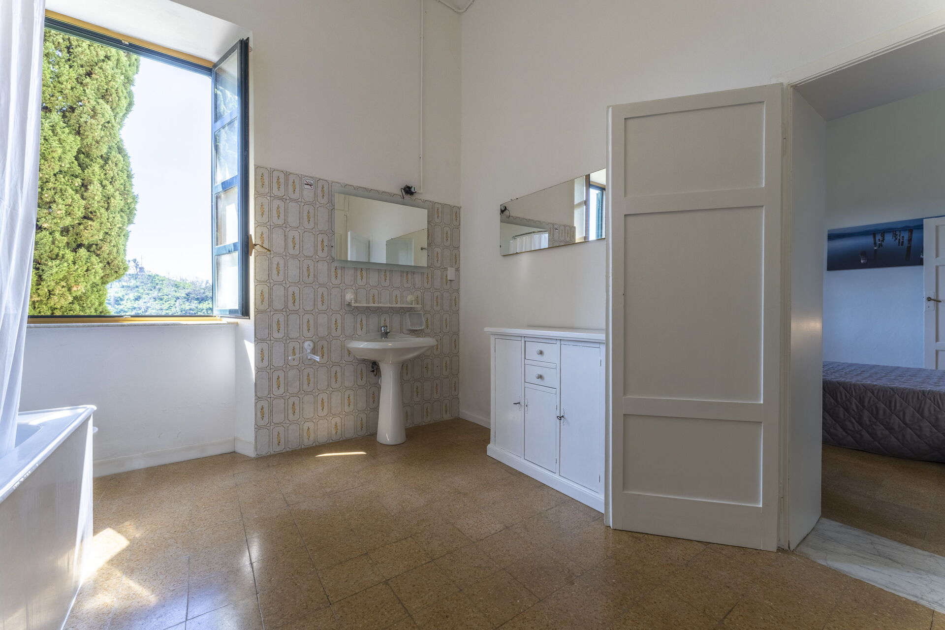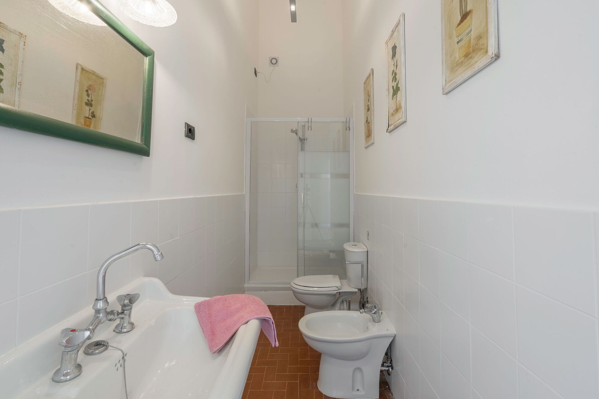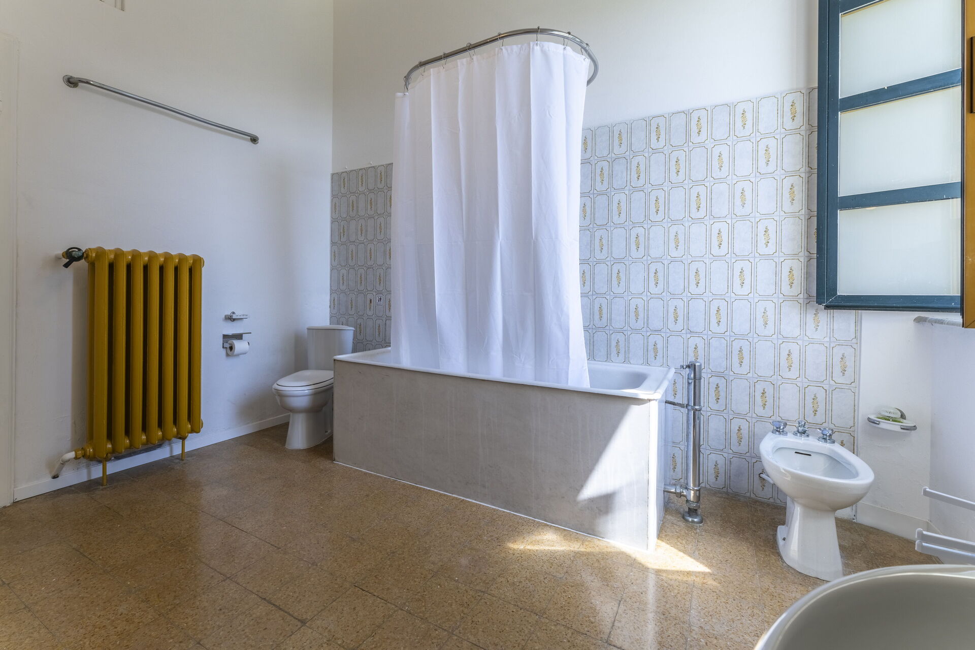Bathroom: basin, toilet, bidet, bathtub.