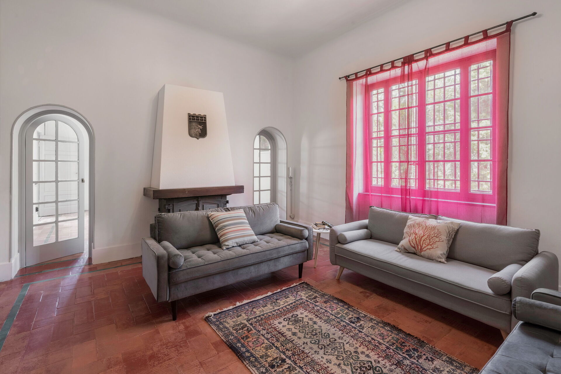 Living room: two sofas, fireplace, WIFI internet, television.