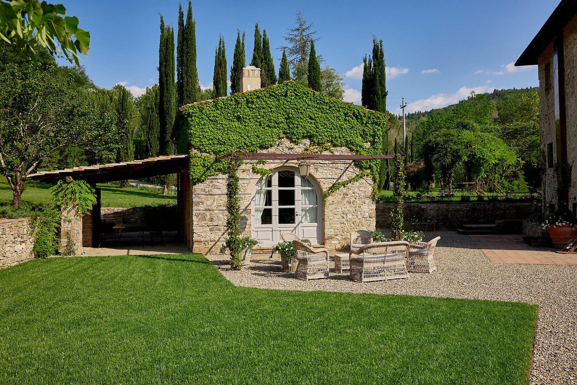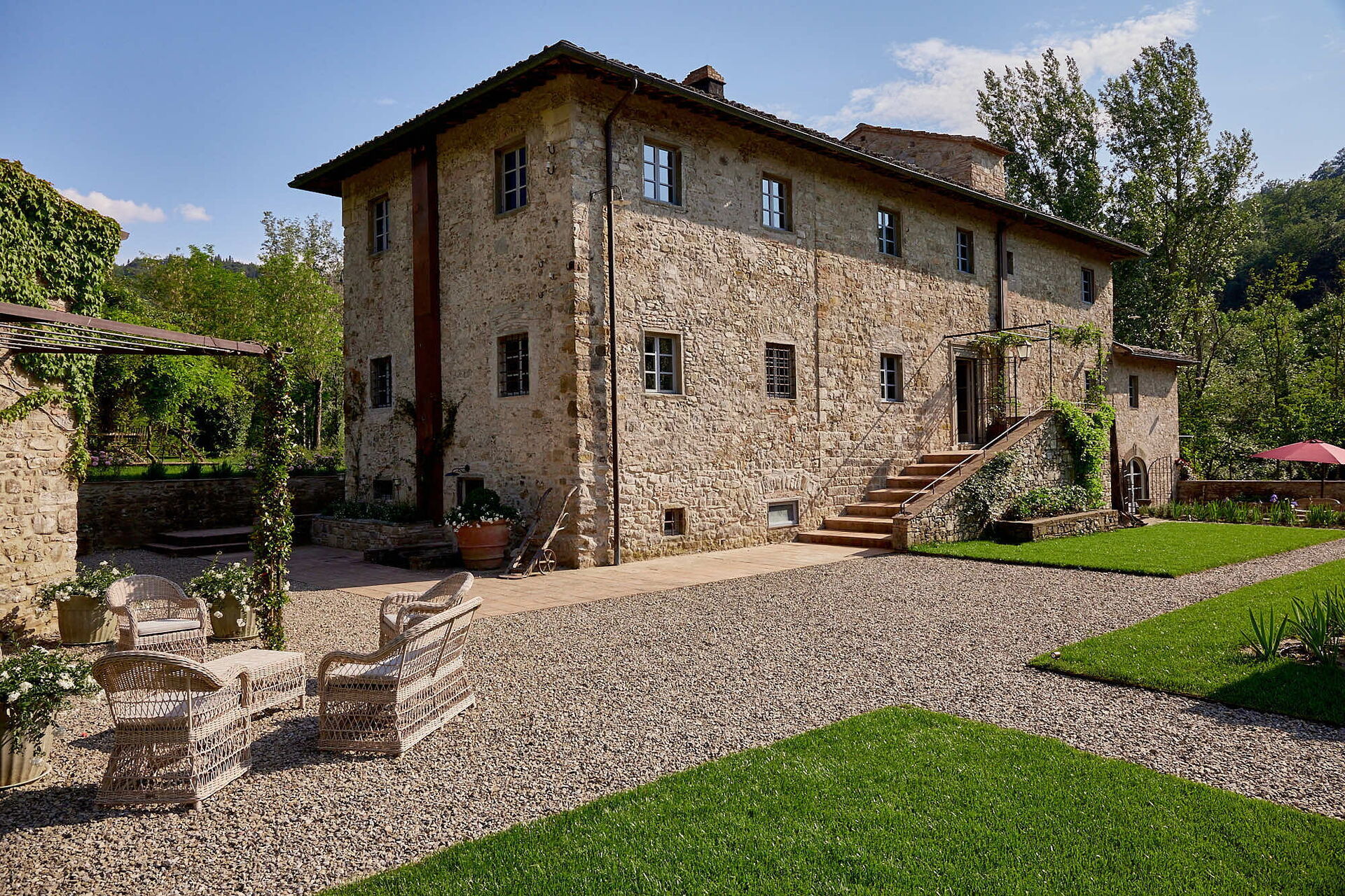 Villa Dell'abate is a beautiful vacation rental with air conditioning, WiFi internet and private pool. The property can accommodate up to 14 people comfortably in seven bedrooms with six bathrooms. Conveniently located 3 km (2 mi) from Sambuca, Italy in the tourist area "San Gimignano And Surroundings" and only 13 km (8 mi) from Greve In Chianti.