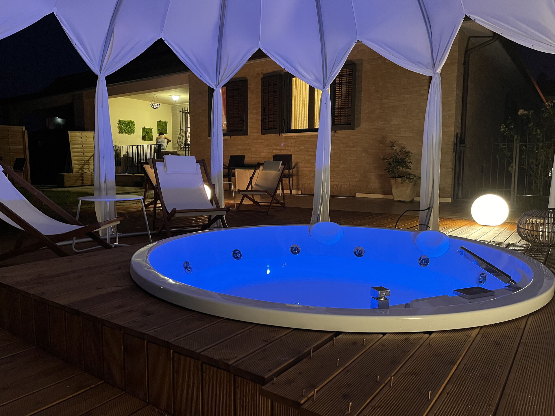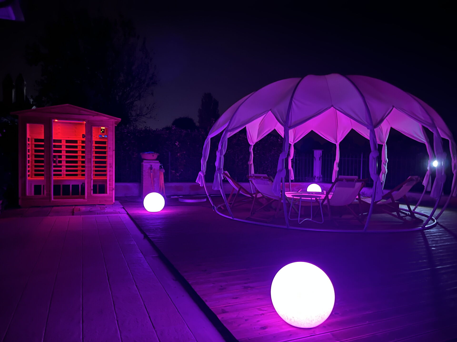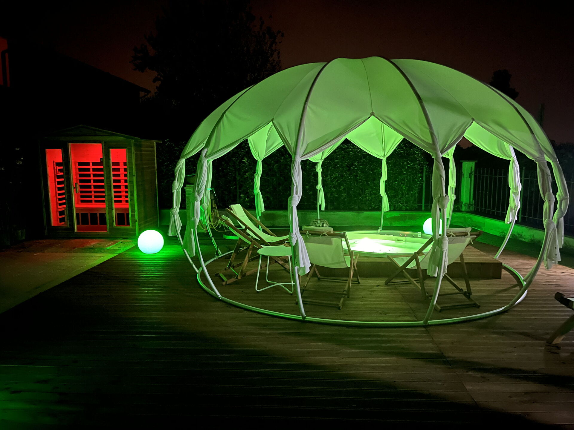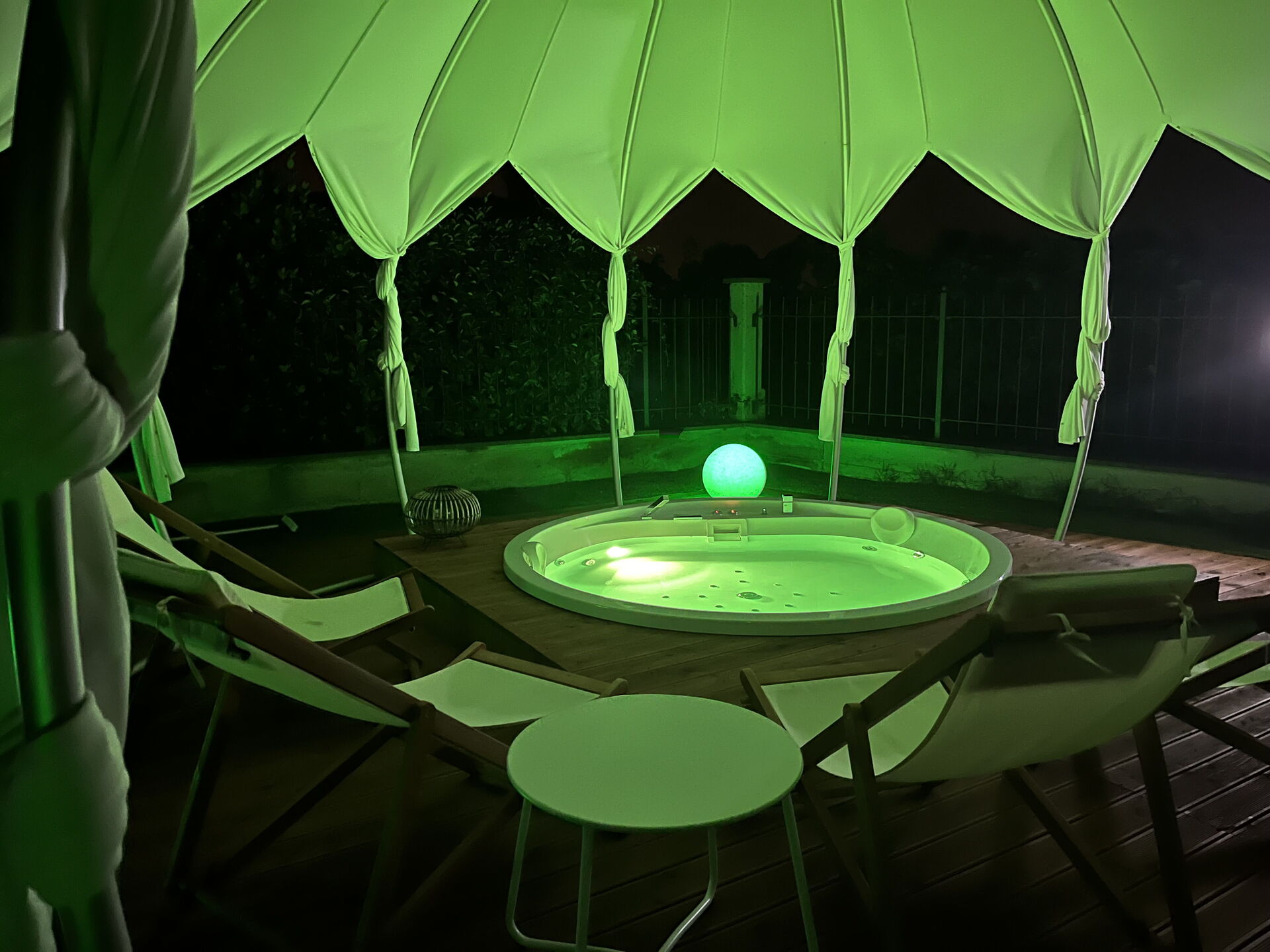 Garden (200 m2): outdoor hot tub (length: 4m, width: 4m), shower, WIFI internet, barbecue, dining table, gazebo, garden furniture, sunbed, enclosed property, children's playground.