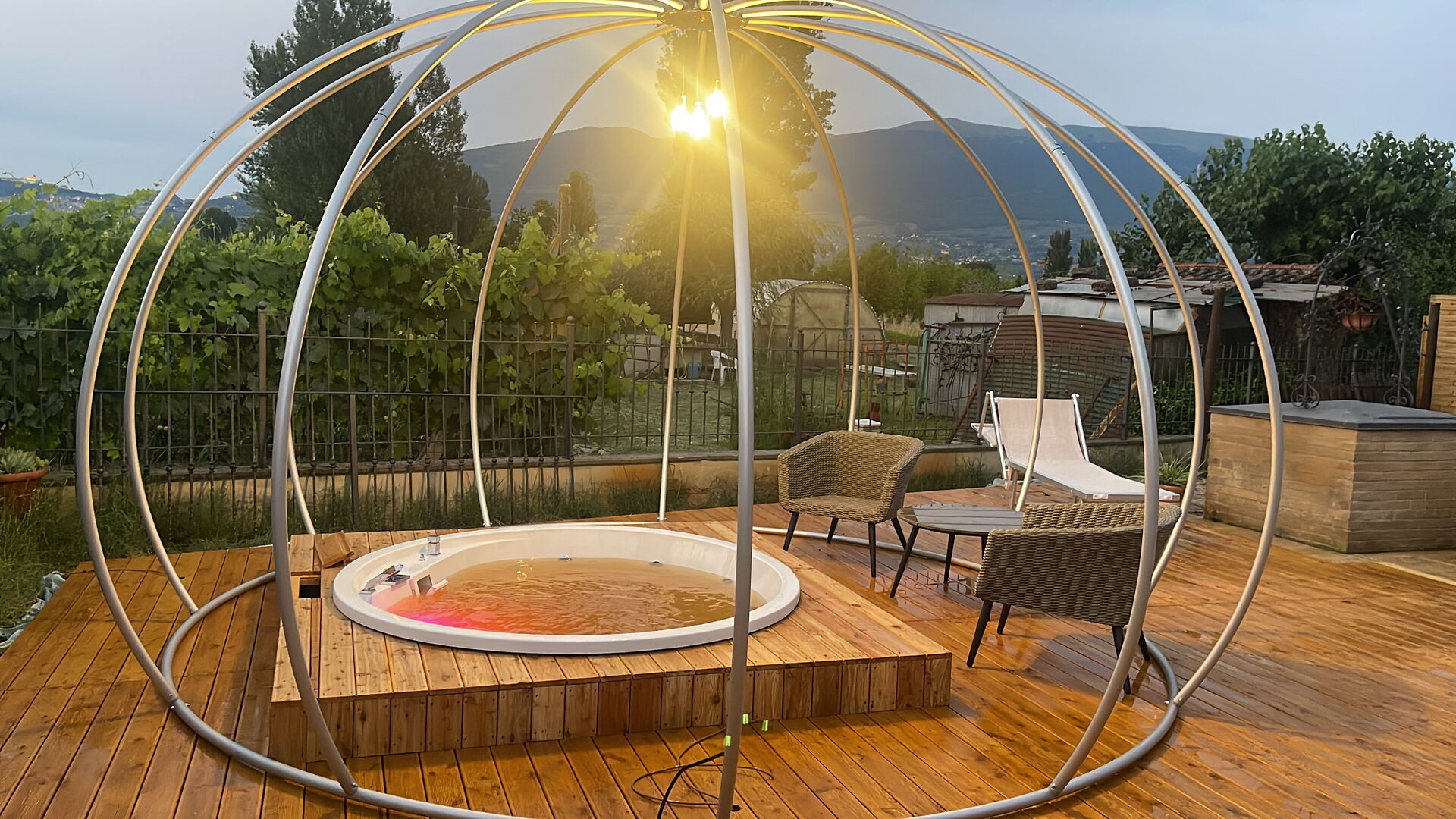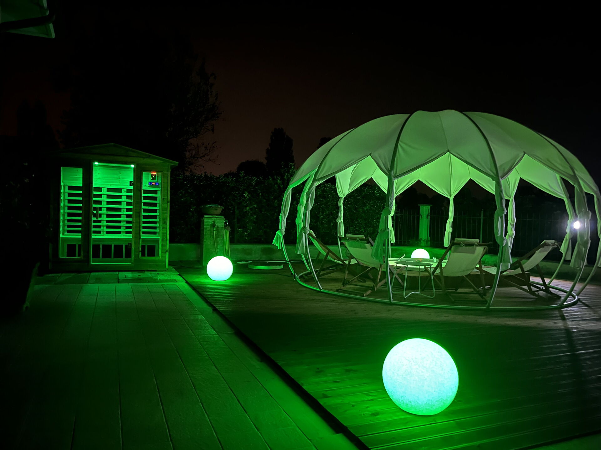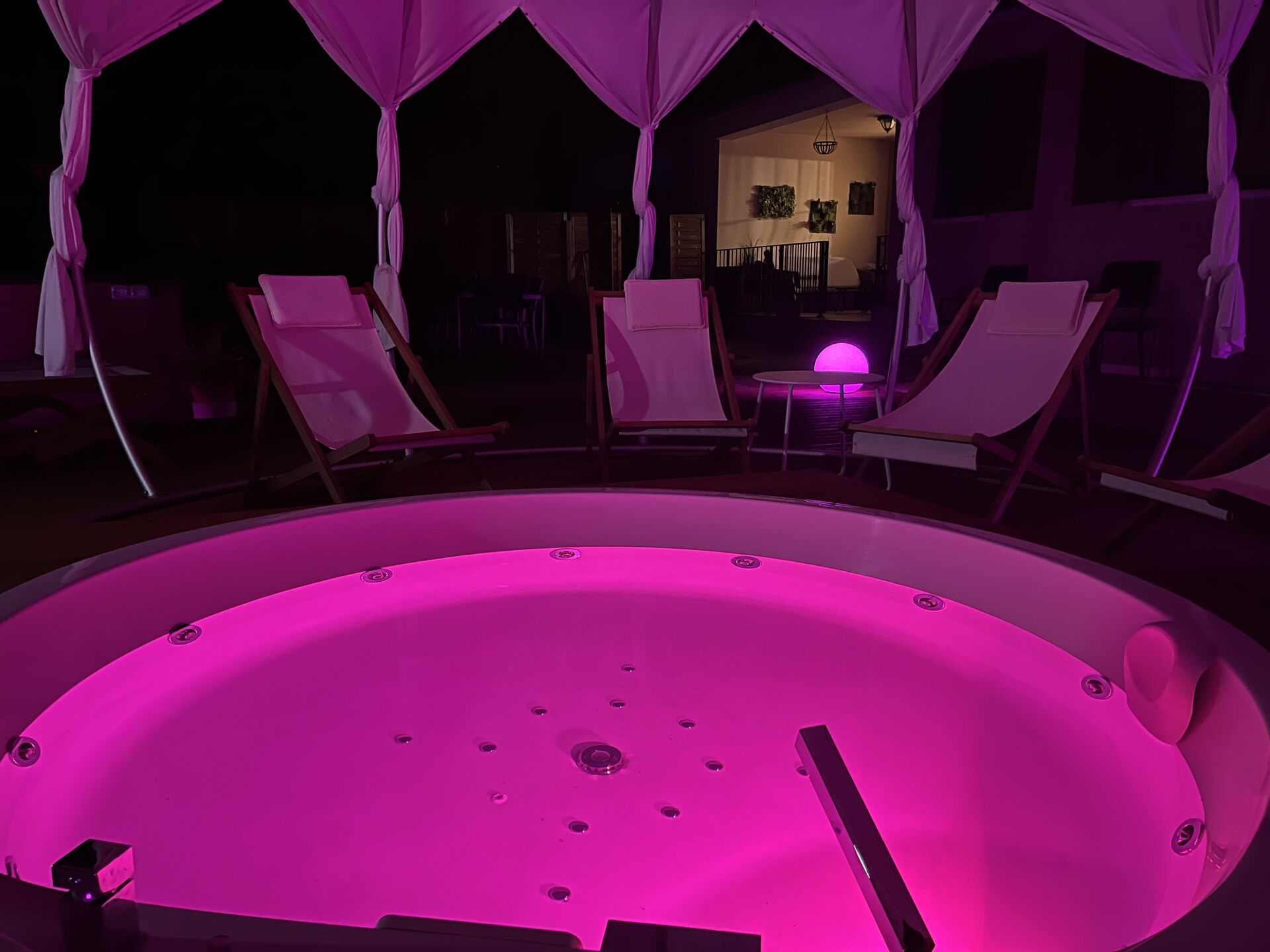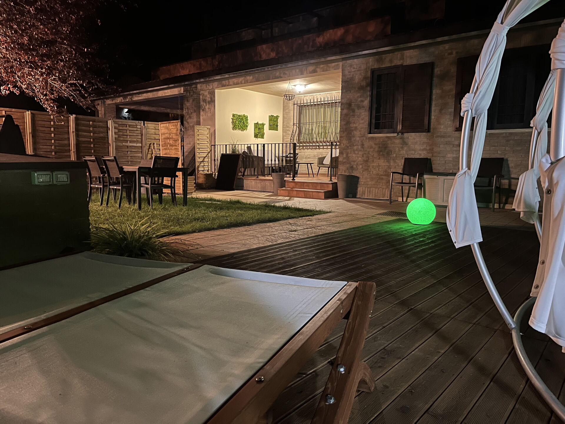 Garden (200 m2): outdoor hot tub (length: 4m, width: 4m), shower, WIFI internet, barbecue, dining table, gazebo, garden furniture, sunbed, enclosed property, children's playground.