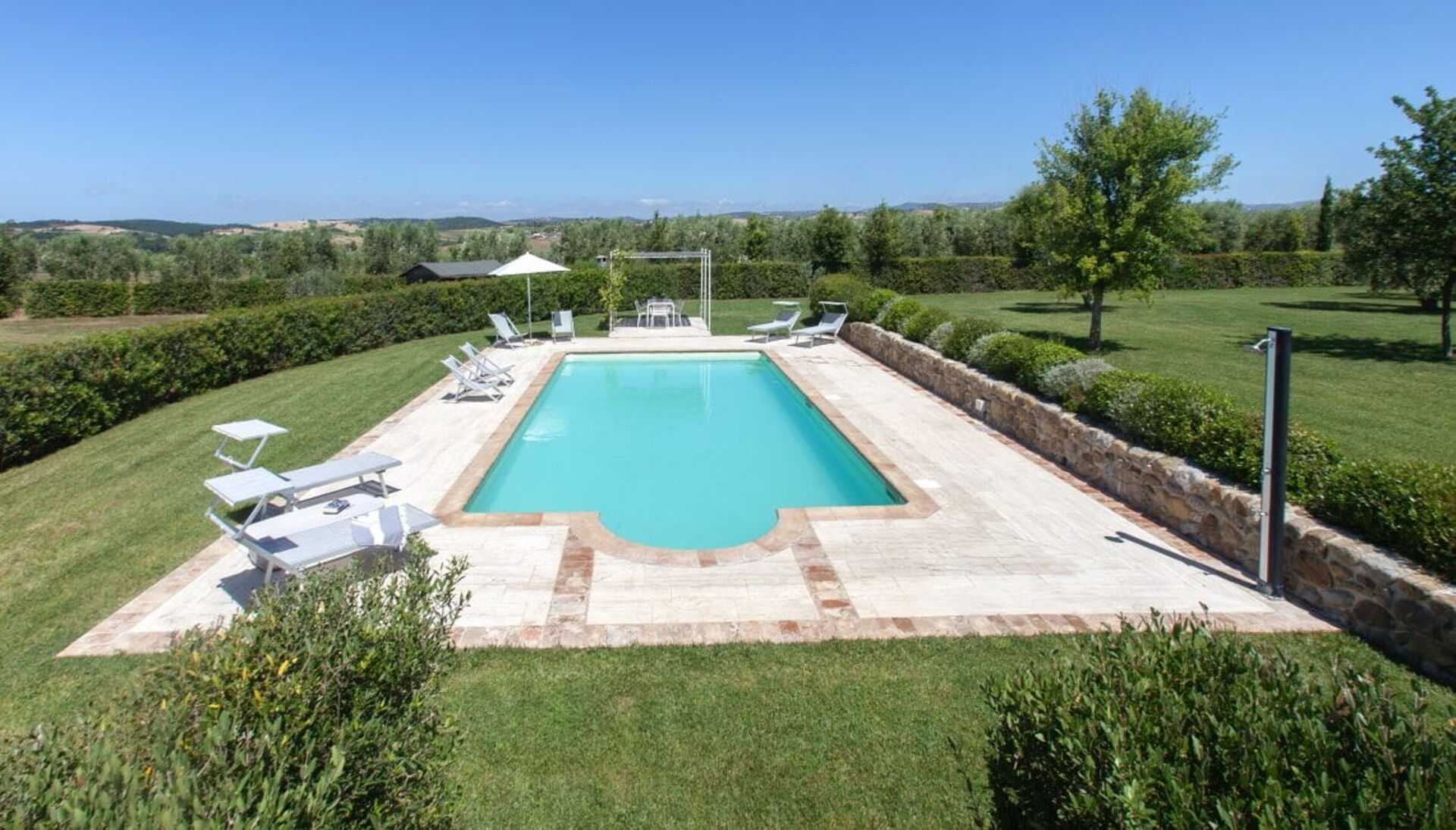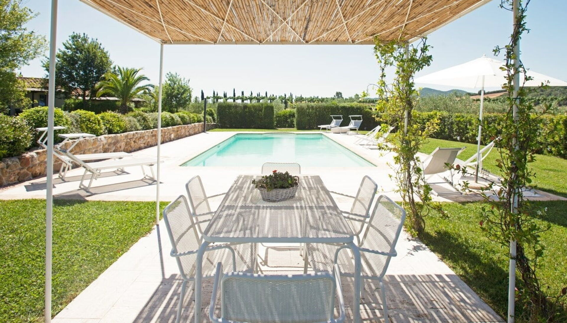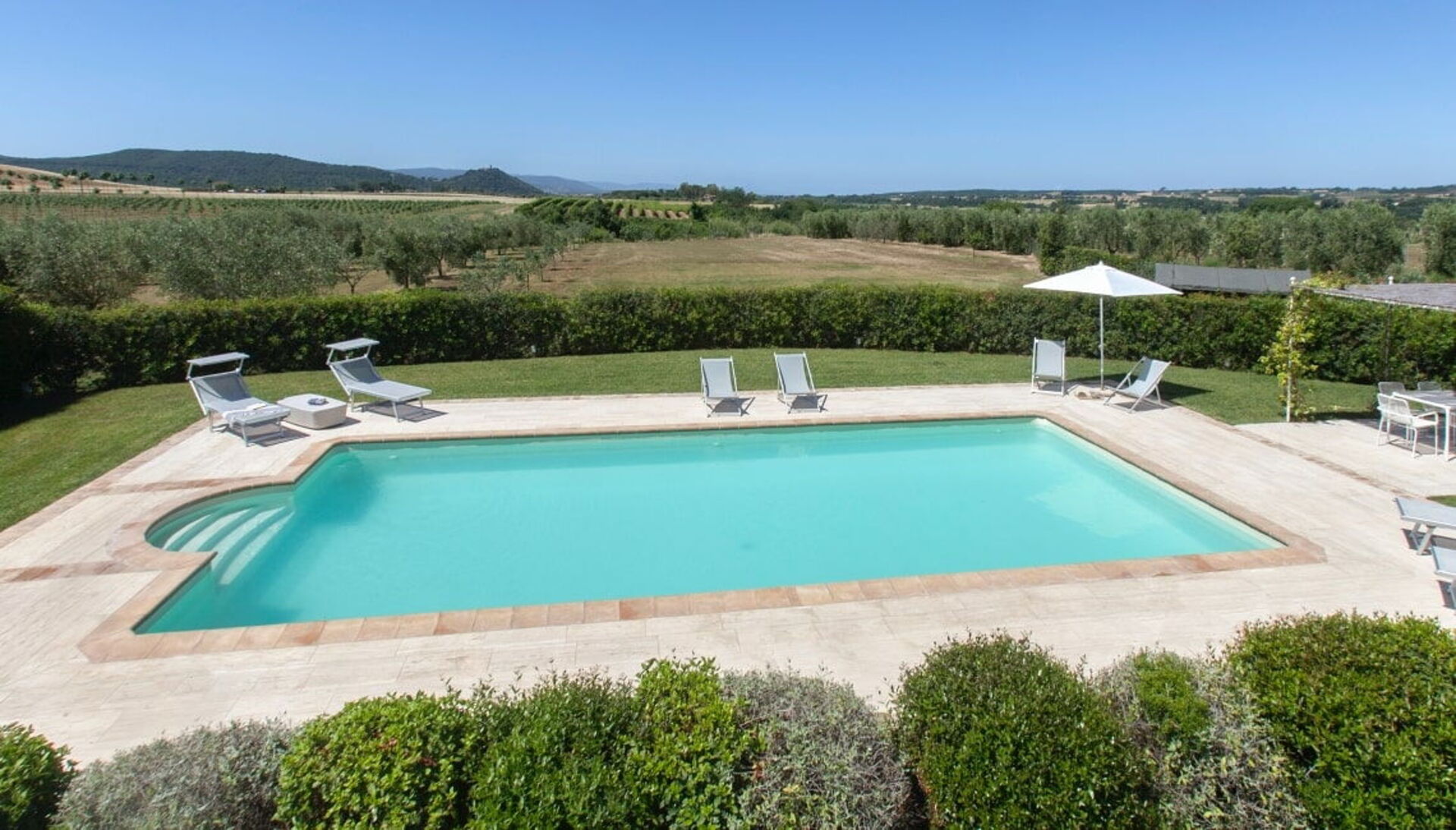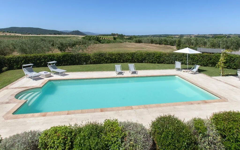 The holiday Villa in Maremma, Tuscany, is surrounded by a wide olive grove, cypresses and a lush garden. A wonderful private pool (11x5m, 1,40 deep) and a nice pergola are highlights of this villa.